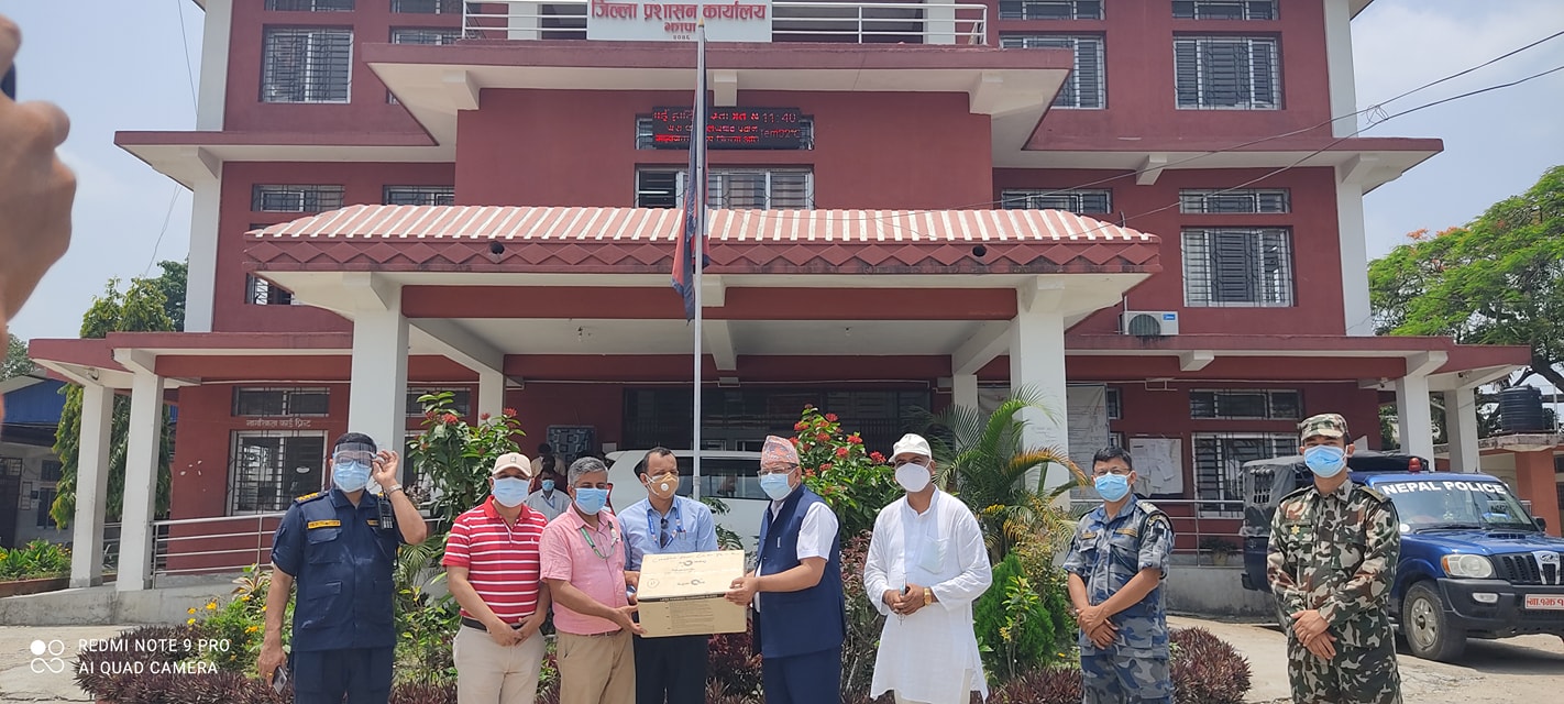 संघका अध्यक्ष गणेश ढकाल, वरिष्ठ उपाध्यक्षमहेन्द्रकुमार गिरी, सचिव भवानीप्रसाद दंगाल रजिल्ला बचत तथा ऋण सहकारी संघ झापाकाअध्यक्ष घनश्याम अधिकारीको टोलीले आइतवारजिल्ला प्रशासन कार्यालय पुगेर तीनै अंगकासुरक्षाकर्मीहरुका लागि ५ लाख रुपैयाँ बराबरकोस्वास्थ्य सुरक्षा सामग्री प्रमुख जिल्ला अधिकारीश्रवणकुमार तिमिल्सिनालाई हस्तान्तरण गरेको हो । त्यहाँ झापाका प्रहरी उपरीक्षक शानुराम भट्टराई,नेपाली सेना चारआलीका प्रमुख सेनानी गौरवजंगथापा र सशस्त्र प्रहरी निरीक्षक रमेशकुमार पाण्डेकोपनि उपस्थिति थियो ।