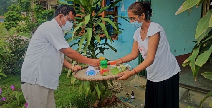 मंगलबार शिवसताक्षी नगरपालिकाका प्रमुख चन्द्रकुमार सेर्मा रोग प्रतिरोधात्मक क्षमता बढाउने जडिबुटी जन्य औषधि लिएर संक्रमितका घरैमा पुग्दा उनीहरुको अनुहारमा खुशी देखिन्थ्यो ।