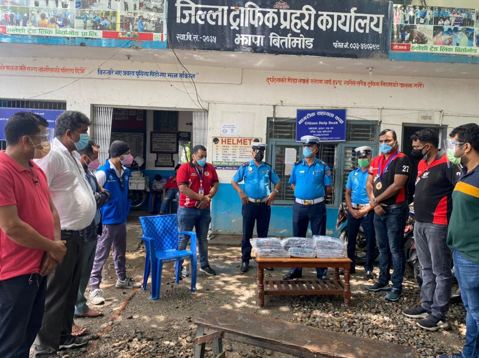 राउण्ड टेवलले नेपालपत्रकार महासंघ झापालाई ३ सय थान, नेपाल फोटो पत्रकार महासंघ झापालाई ५० थान, इलाका प्रहरी कार्यालय बिर्तामोडलाई ३ सय थान, जिल्ला ट्राफिक प्रहरी कार्यालयलाई १ सय थान , त्यसैगरी इआरसी झापालाई ३० थान, रेडक्रस उपशाखा बिर्तामोडलाई ५० थान मास्क प्रदान गरेको राउण्ड टेवलका शरद जोशीले जानकारी दिए ।