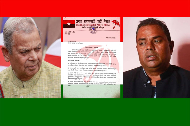 जनता समाजवादी पार्टीका अध्यक्ष महन्थ ठाकुरले अर्का अध्यक्ष उपेन्द्र यादवलाई ७ बुँदे स्पष्टीकरण सोधका छन्।