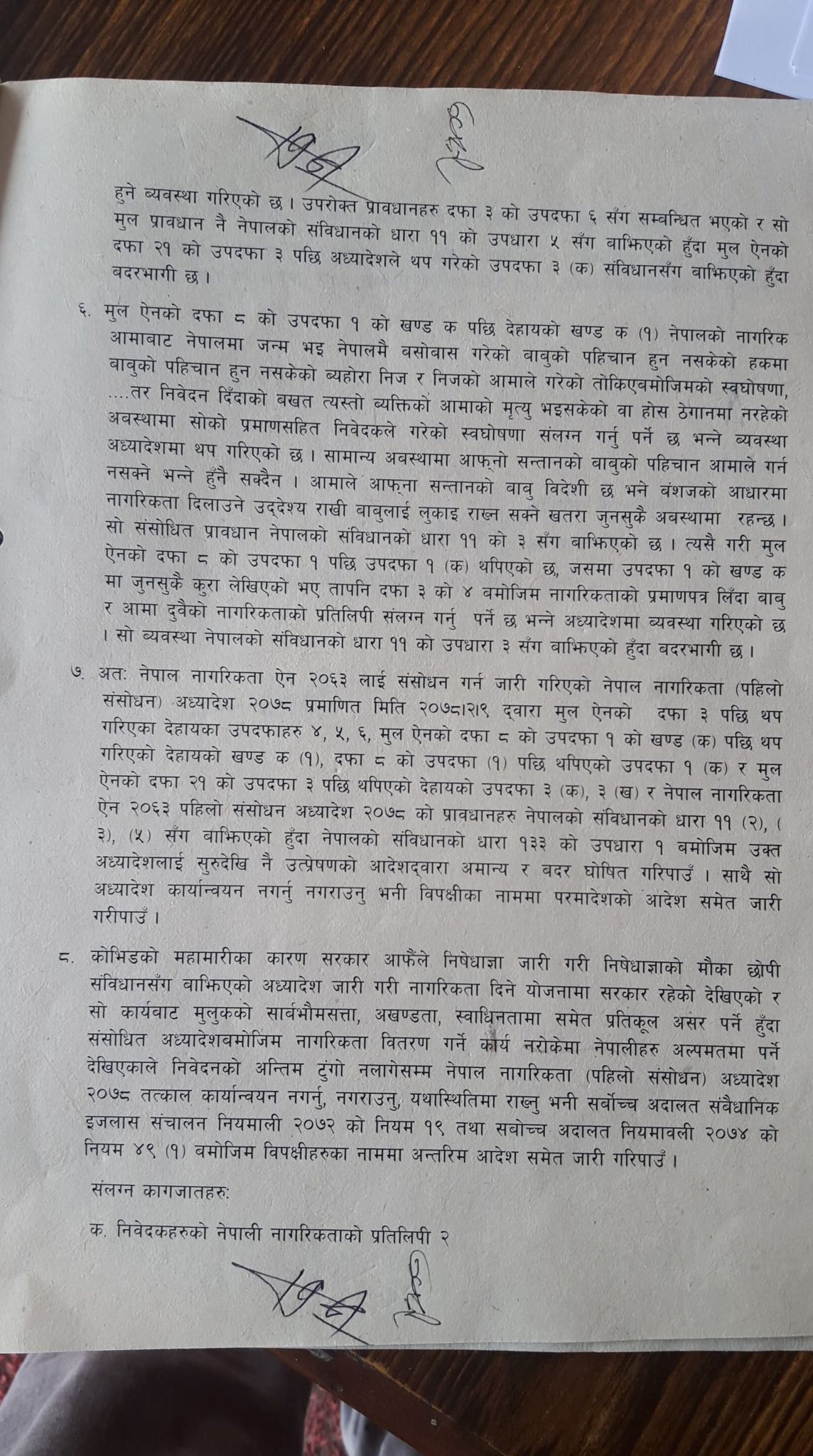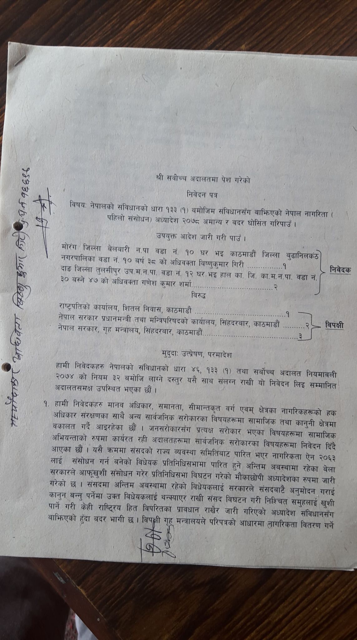 नागरिकता अध्यादेश खारेजीको माग गर्दै सर्वोच्चमा रिट, जेठ २१ लाई तोकियो पेशी