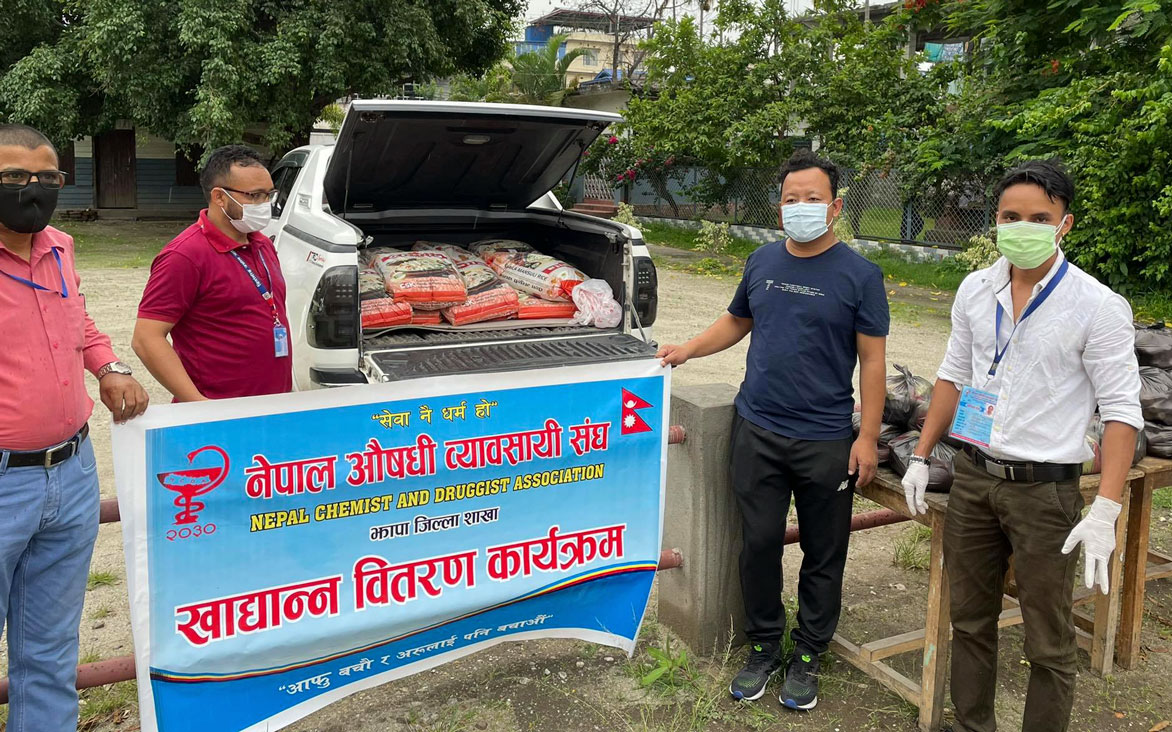 नेपाल औधषि व्यवसायी संघ झापाद्वारा खाद्ययन्न वितरण