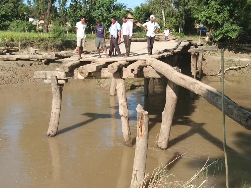 गाउँपालिकाबाटै विस्थापित गर्न लागिएको काठे पुल ।