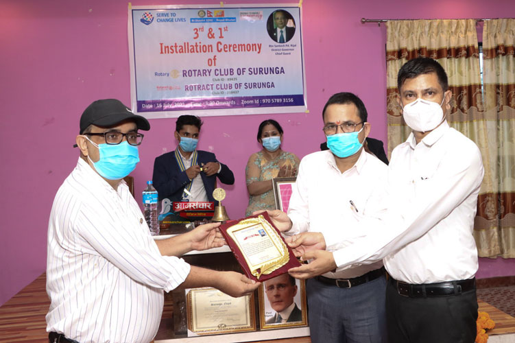 रोटरी क्लव सुरुंगाका अध्यक्ष सुशीलकुमार श्रेष्ठको अध्यक्षतामा आयोजित कार्यक्रममा रोटरी क्लवका डिष्ट्रिक गर्भनर सन्तोषप्रसाद रिजालको प्रमुख आथित्यता रहेको थियो । रिजालले जुम मार्फत आथित्यता ग्रहण गरेका थिए ।