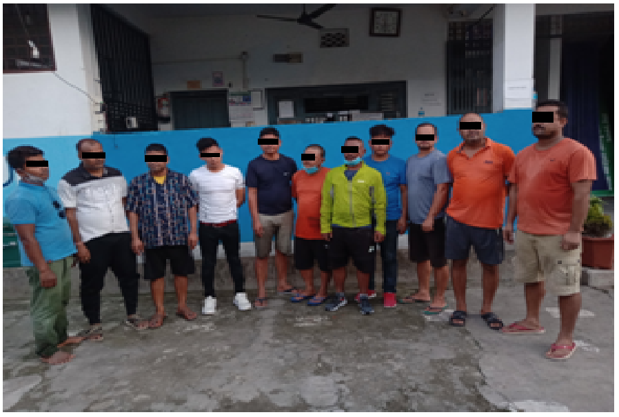 प्रहरी प्रवक्ता डीएसपी थापाका अनुसार पक्राउ पर्नेहरुमा घरधनी दमक —७बस्ने ४० वर्षीय कर्णबहादुर राई, गौरादह —३ बस्ने ४२ वर्षीय दिनेश अधिकारी, सोहि ठाउँका ३८ वर्षीय इन्दुकुमार राजवंशी, इटहरी उपमहानगरपालिका —४ बस्ने ३५ वर्षीय विक्रम गुरुङ्ग, गौरादह —२बस्ने ३२ वर्षीय निर्मल थापा, दमक—२ का बस्ने ४२ वर्षीय रामबहादुर धिमाल, दमक—७ ४० वर्षीय राजन दाहाल, गौरादह— ३ बस्ने ३४ वर्षीय अंकित कार्की, दमक— ७ बस्ने ४४ वर्षीय गंगा पाठक, सुनसरी इटहरी उपमहानगरपालिका —१९ बस्ने २६ वर्षीय मिलन राई र दमक — ६ बस्ने ३३ वर्षीय विजय सिहं रहेका छन् ।