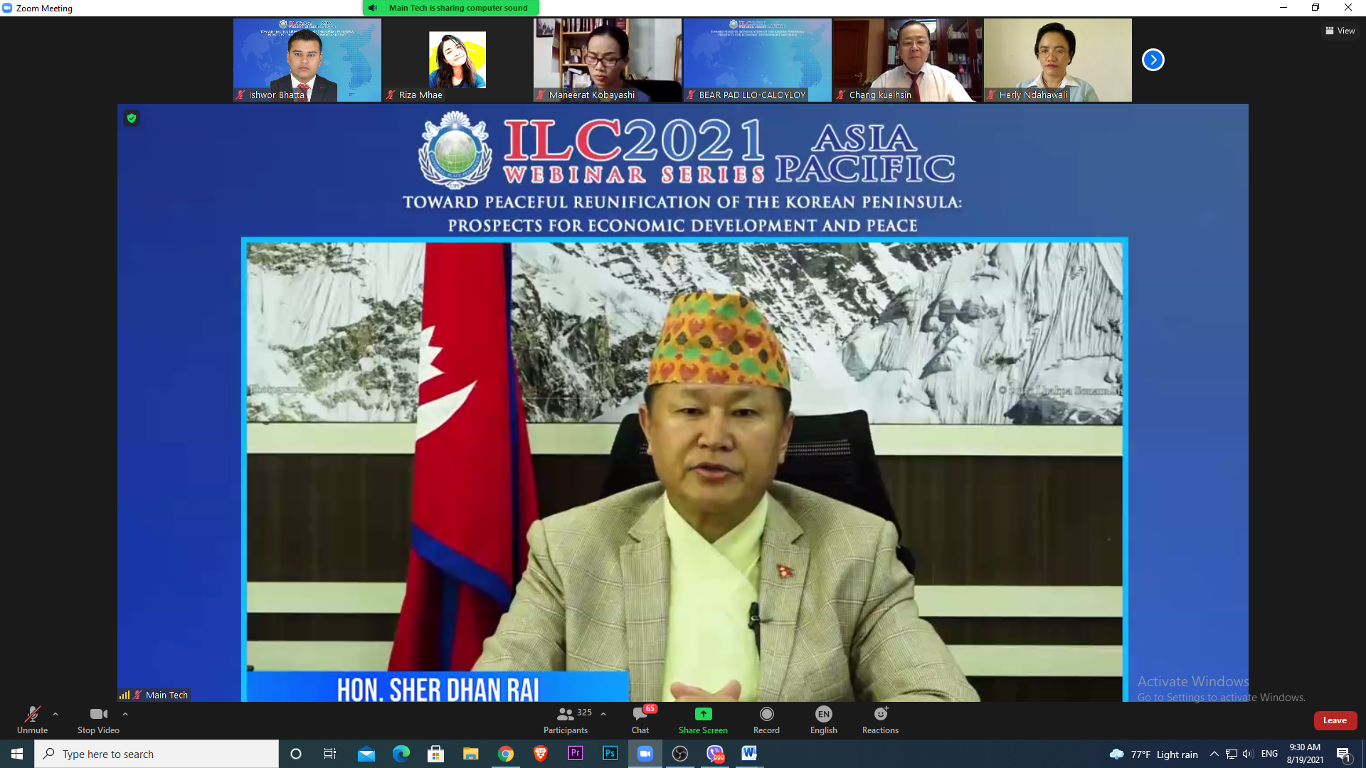 संबिधानसभा सदस्य उदय नेपाली श्रेष्ठ लामो विभाजित र प्राविधिक रूपमा युद्धमा रहेका कोरियाली प्रायद्वीपका राष्ट्रहरूबिच शान्तिमय पुनर्मिलनको व्यावहारिक समाधान खोज्नका लागि आवश्यक रहेको बताए । सम्मेलनमा भारतीय जनता पार्टीका नेता बिजय जोली, बासिङटन टाइम्स्का अध्यक्ष म्याक डेबिट,नेपालका लागि पूर्व भारतीय राजदुत केबी राजन प्रोफेसर सिर्जना थापा लगायताका बत्ताहरुले बोलेका थिए ।