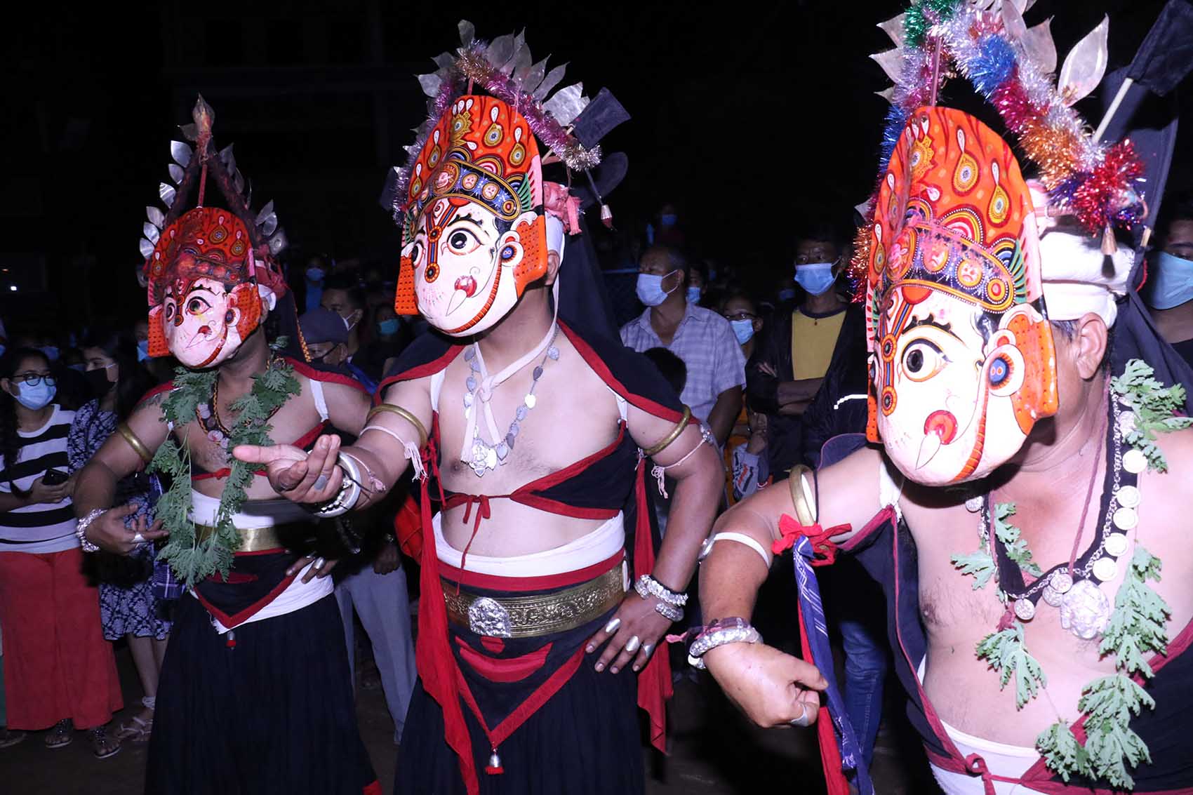 वर्षौंदेखि जस्तोसुकै अवस्थामा पनि नरोकिएको यो नाच यस वर्ष पनि नरोक्ने तर दिउँसो सञ्चालन नगर्ने निर्णय गरिएको थियो । राति सञ्चालन गर्दा जात्रामा भीडभाड कम हुने भएकाले देवगणदेखि नाच सञ्चालनमा जोडिने व्यक्ति र स्थानीयलाई पनि सङ्क्रमणबाट जोगिन तथा जोगाउन सचेतना अपनाउन राति सञ्चालन गरिएको हो ।