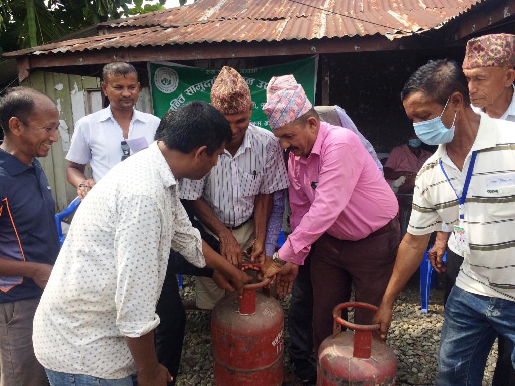 समूहले पहिलो चरणमा समूहको कार्यालय परिसरमा ७८ जनालाई र दोस्रो चरणमा स्थानीय सरस्वती प्राथमिक विद्यालयको प्राङ्गणमा एक सय २२ जनालाई सिलिन्डर ग्याँस वितरण गर्ने कार्यसूची रहेको समूहकी उपाध्यक्ष मञ्जिला गौतमले जानकारी दिइन् ।