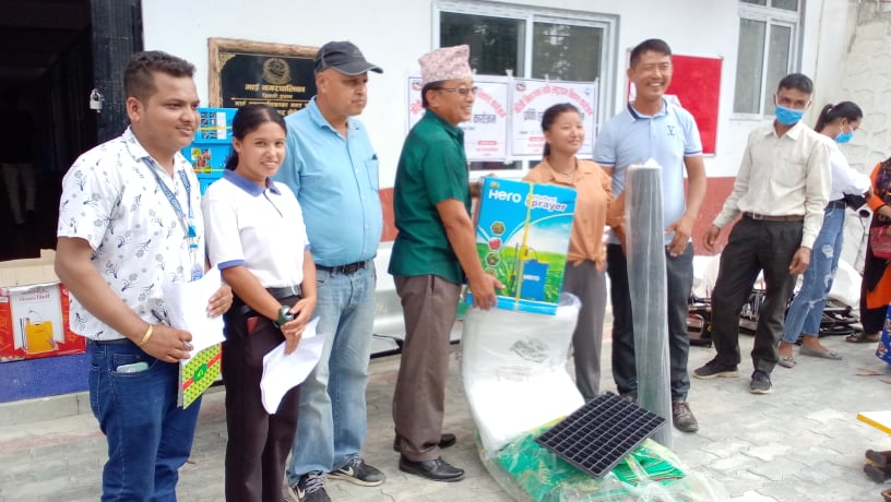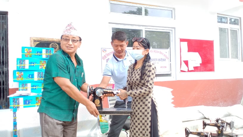 मेयर थेबेले ७ बटा सिलाई कटाई मेसिन प्रति मेसिन १६ हजार ३ सय ८५ बराबरका दरले, कृषि प्रविधि अन्तर्गत १४ जनालाई प्रति ब्याक्ति ग्रिननेट, प्लाष्टिक टनेल, स्प्रे ट्याक्की, मलचिङ प्लाष्टिक, नर्सरी ट्रे १/१ थान गरि प्रति ब्यबसायी १९ हजार २ सय ८५ बराबरको, बाईरिङ्ग सामाग्री १० जनालाई जम्मा १५ हजार बराबरको, बंगुर पालनका लागि प्रबिधि १० जनालाई जम्मा २२ हजार बराबरको, बाख्रा पालन प्रबिधि २७ सयका दरले २३ जनालाई मेयर दिपक कुमार थेवेले सामाग्री वितरण गर्नुभयो ।