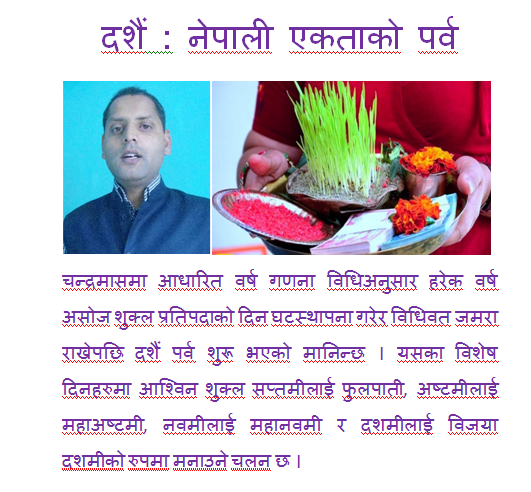 दशैं : नेपाली एकताको पर्व : एक अर्काको पर्वलाई अपनत्व ग्रहण गरी रमाए मात्र हाम्रो सँस्कृति बलियो हुनेछ