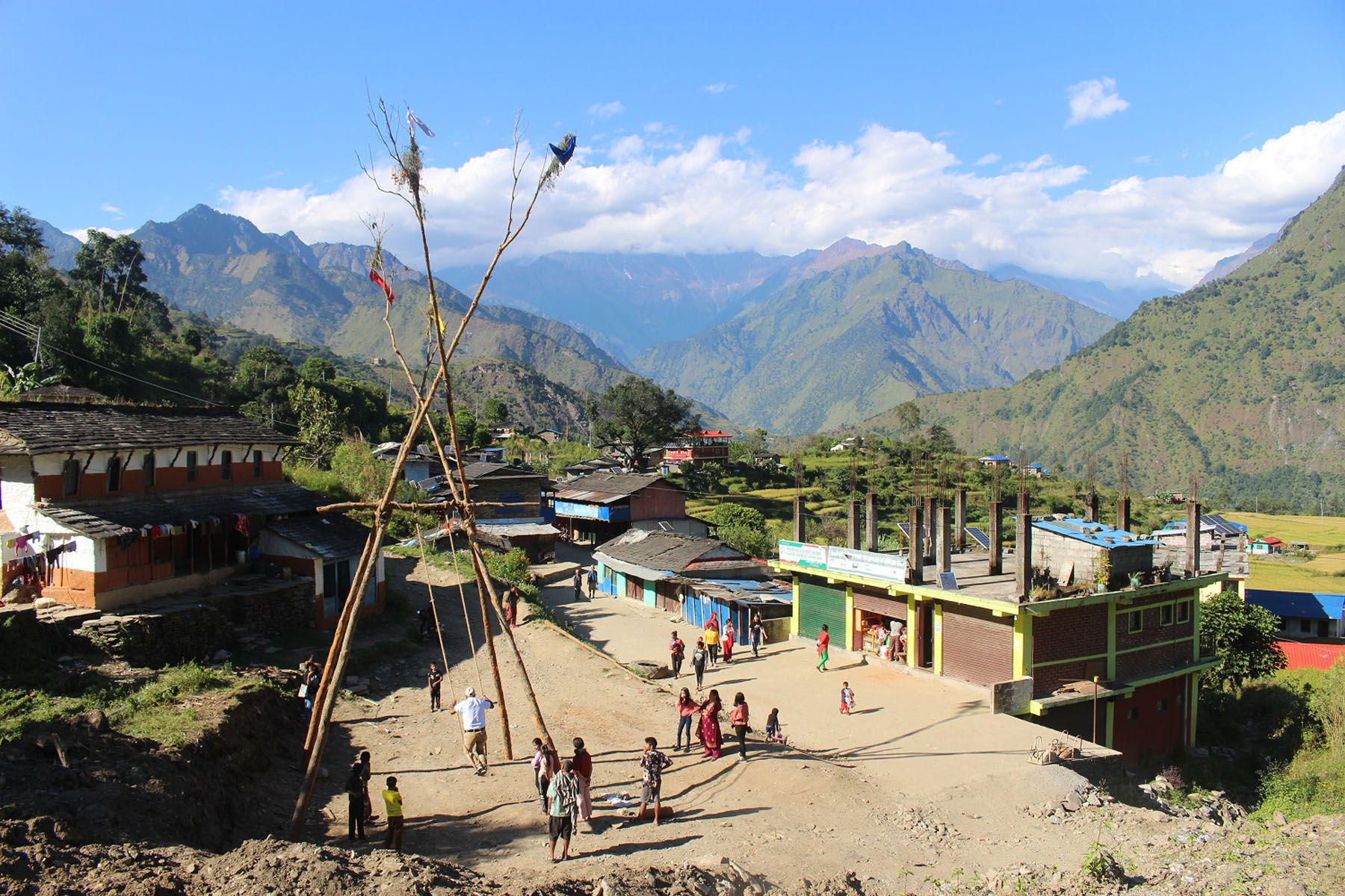 म्याग्दीको धवलागिरी गाउँपालिका–७ ताकमका दशैंको अवसरमा हालिएको पिङ खेल्दै । तस्वीर – सन्तोष गौतम
