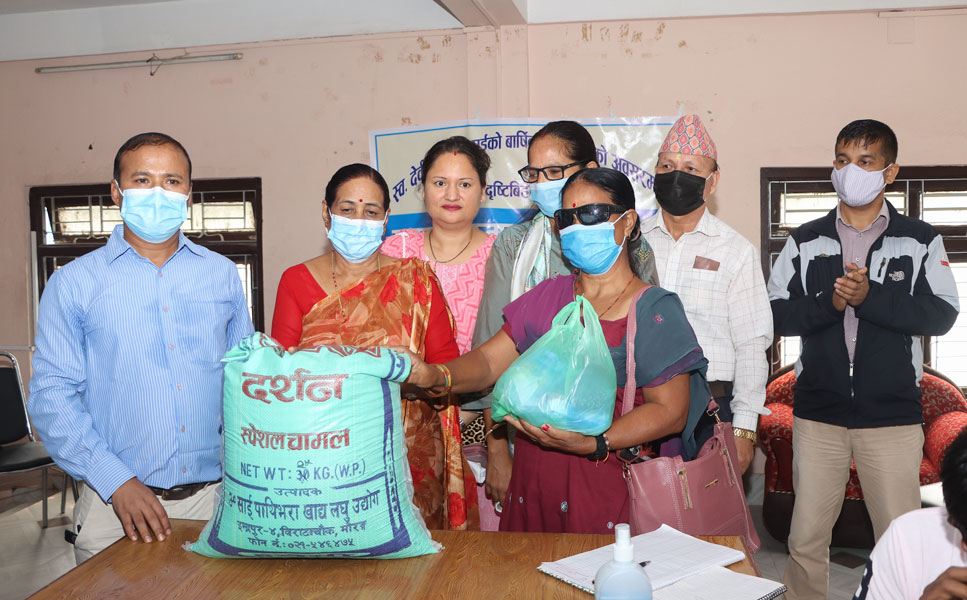 बिर्तामोडका समाजसेवी देवीप्रसाद भट्टराईको वार्षिक पुण्य तिथिमा उनका परिवारले झापा नेत्रहिन संघका ५५ परिवारलाई खाद्यन्न सहयोग गरेका छन् ।