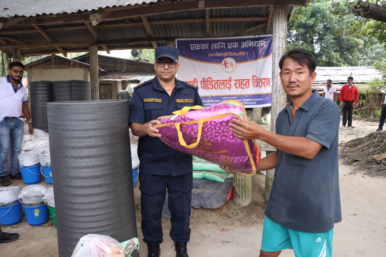राहत बितरण कार्यक्रममा अभियानका संयोजक महेन्द्रकुमार गिरी, अभियन्ताहरु लीला चिमरिया, गजेन्द्रवहादुर पौडेल, अर्जुनकुमार चुडाल, प्रमुम जिल्ला अधिकारी श्रवणकुमार तिमिल्सिना, प्रहरी उपरीक्षक सानुराम भट्टराई लगायतको उपस्थिति रहेको थियो ।