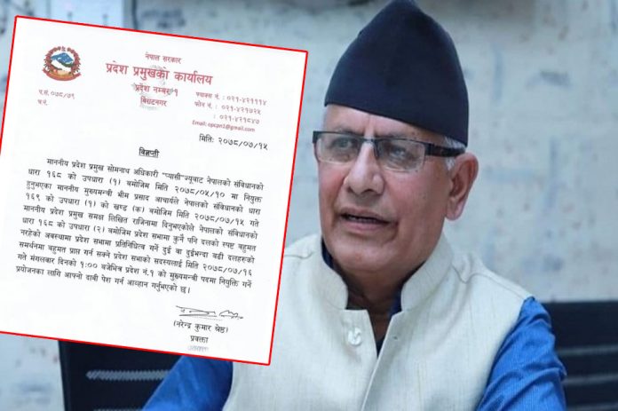 मुख्यमन्त्री आचार्यको राजीनामा स्वीकृत गरेलगत्तै प्रदेश प्रमुखले नयाँ सरकार गठनका लागि आह्वान गरेका हुन् ।-फलैचा न्यूजबाट