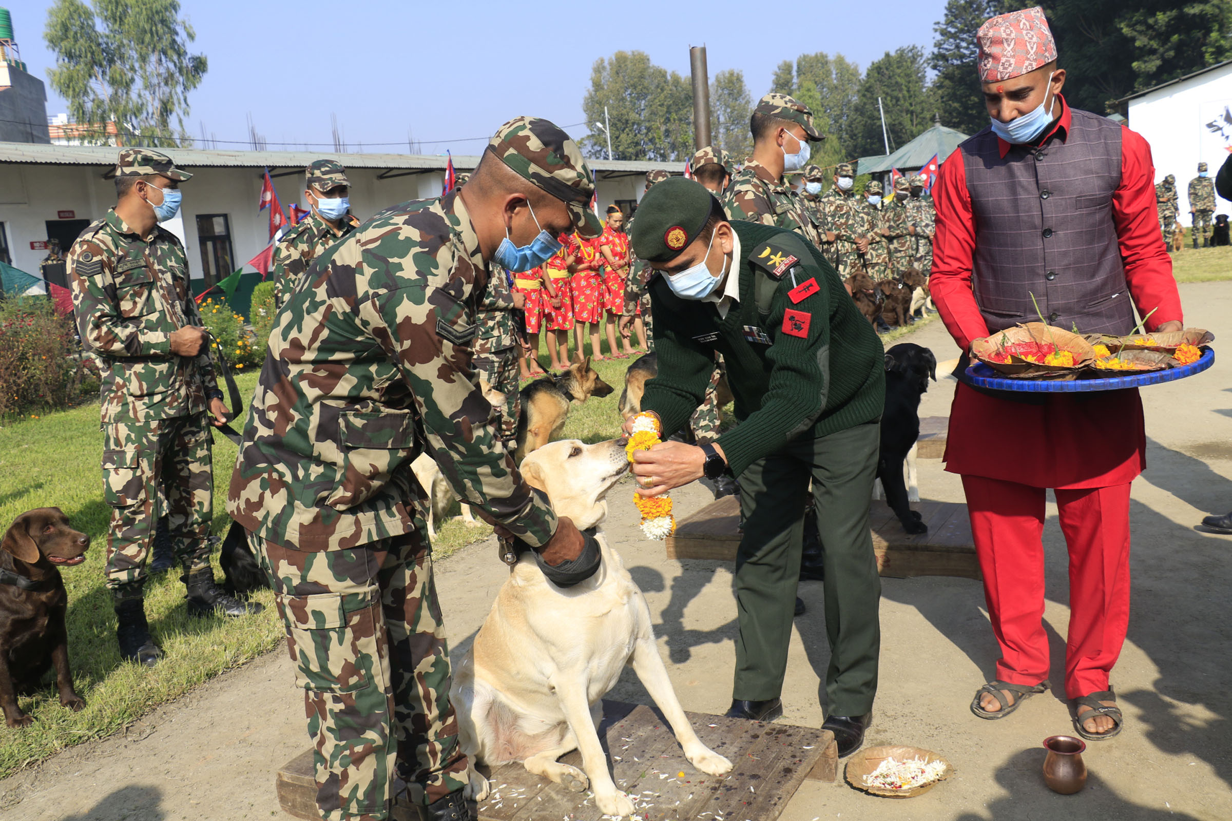 यमपञ्चकको दोस्रो दिन अर्थात् कुकुर तिहारका अवसरमा नेपाल प्रहरीको केनाइन महाशाखा महाराजगञ्जमा आज आयोजित कार्यक्रममा महाशाखाकी प्रमुख, प्रहरी वरिष्ठ उपरीक्षक (एसएसपी) डा देउती गुरुङले कुकुर पुजा एवं पुरस्कृत गर्नुभएको हो ।
