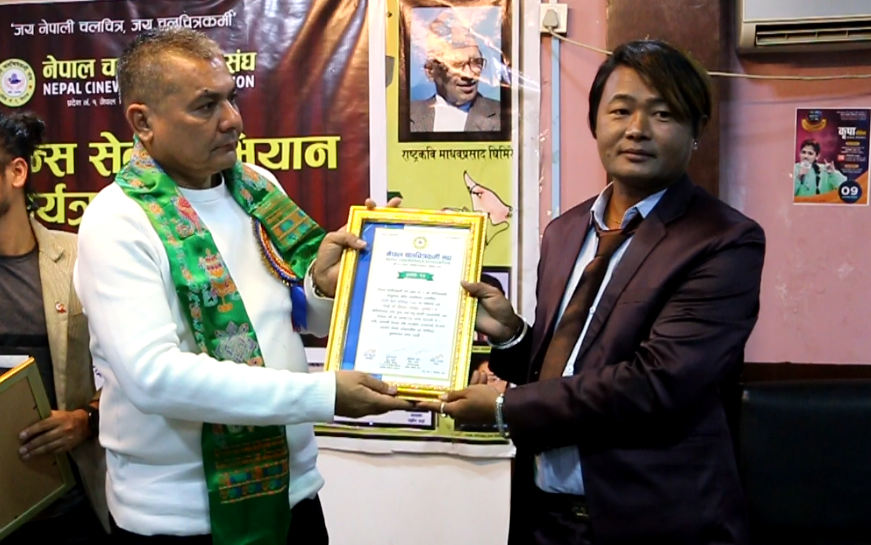 संघले शुक्रबार झापाको बिर्तामोडस्थित होटल हिकोला हेरिटेजमा एक कार्यक्रमकाबीच एम्बुलेन्स खरिदकालागि सञ्चालन गरेको देउसी भैलो कार्यक्रम २०७८ मा सहभागी कलाकार तथा चलचित्रकर्मीलाई सम्मान गरेको हो ।