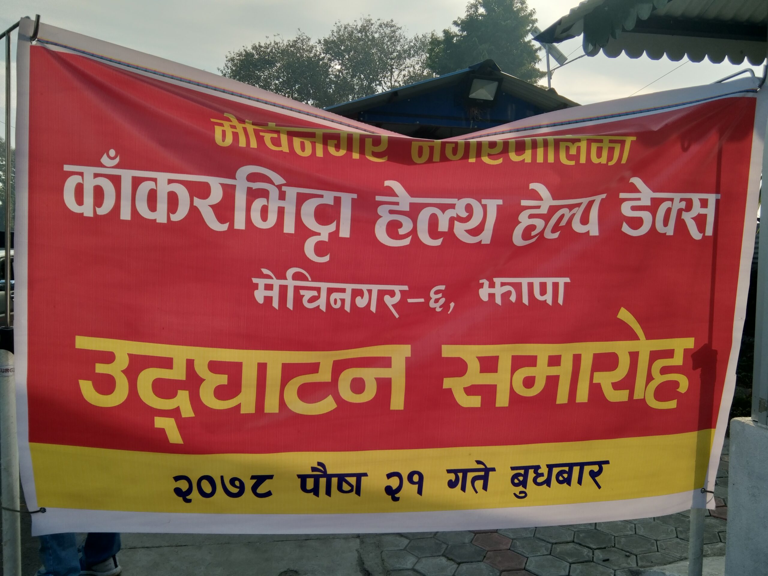 मेचीनगर नगरपालिकाको ‘काँकरभिट्टा हेल्थ हेल्प डेक्स’ उद्घाटन समारोहका प्रमुख अतिथि समेत रहनु भएका नगरप्रमुख आचार्यले व्यानर पढेर उद्घाटन गर्नुभएको थियो । सवै सीमाक्षेत्रहरुमा स्वास्थ्य चेकजाँच गर्नका लागि नेपाल सरकारले धेरै वर्षदेखि ठाउँ ठाउँमा स्वास्थ्य केन्द्र, चौकीहरु स्थापना गरेको भन्दैं नगरप्रमुख आचार्यले कहिले औलो नियन्त्रण र रोकथामका लागि त कहिले कालोज्वरो, कहिले दादुरा तथा कहिले पोलयिोका लागि यस्ता संरचना तयार गरेको बताउनुभयो ।