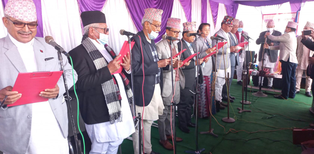 प्रदेश प्रमुख खापुङले रामकुमार राईलाई खानेपानी, सिँचाइ तथा ऊर्जा, राजन राईलाई सामाजिक विकास मन्त्रालय, खिनु लङ्वा लिम्बूलाई पर्यटन तथा सस्कृति, झलकबहादुर मगरलाई कृषि, शेखरचन्द्र थापालाई वन, वातावरण तथा भू–संरक्षण, ओमप्रकाश सरावगीलाई भूमि व्यवस्था, सहकारी तथा गरिबी निवारण, प्रताप प्रकाश हाङगामलाई उद्योग, श्रम तथा रोजगार र उपेन्द्रप्रसाद घिमिरेलाई यातायात व्यवस्था तथा सञ्चारमन्त्रीमा आज पद तथा गोपनियनताको शपथ गराउनुभयो ।