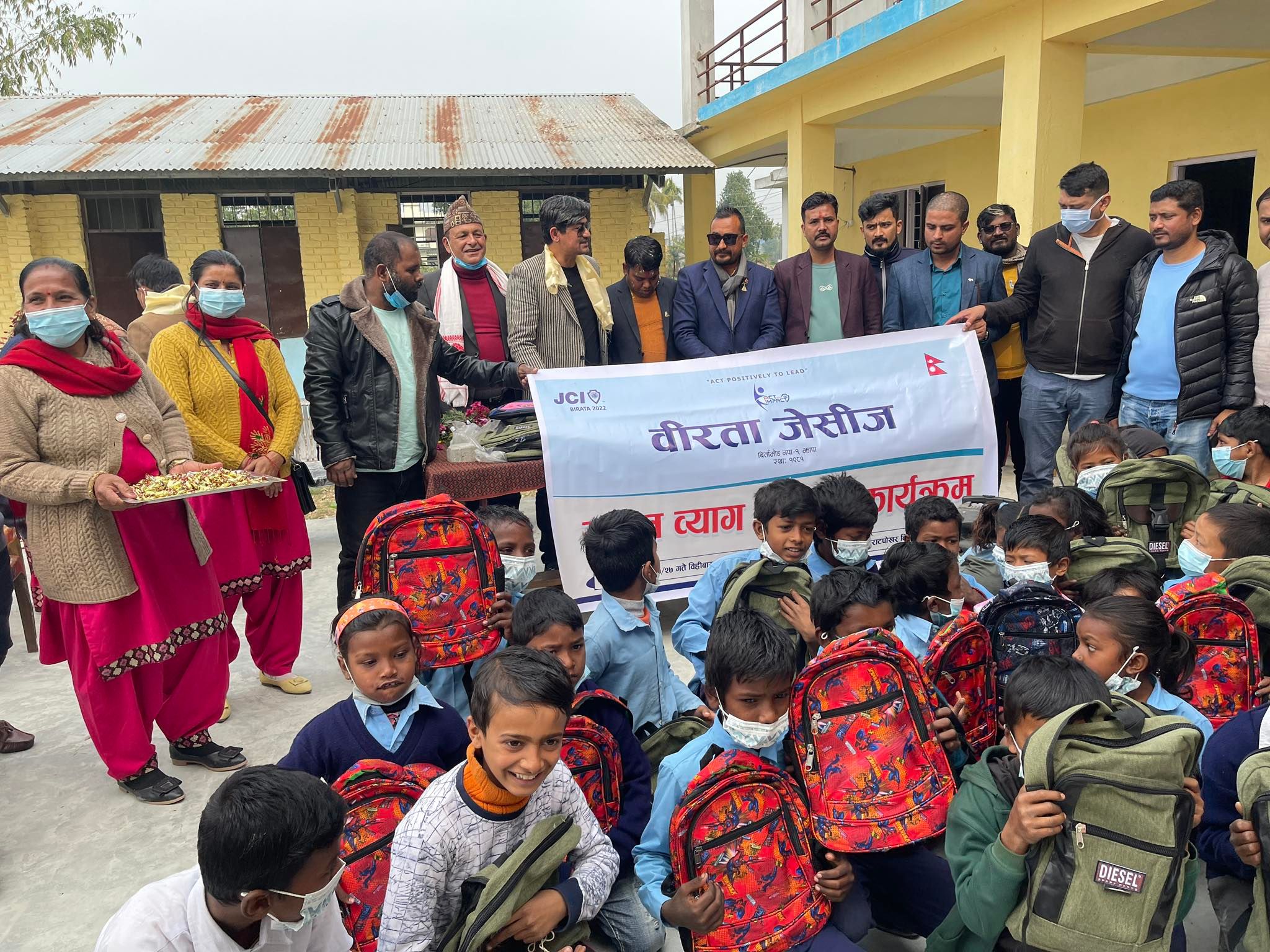 वीरता जेसीजले बिर्तामोड–१० मा रहेको एक विद्यालयमा एक सय विद्यार्थीलाई ब्याग वितरण गरेको छ ।