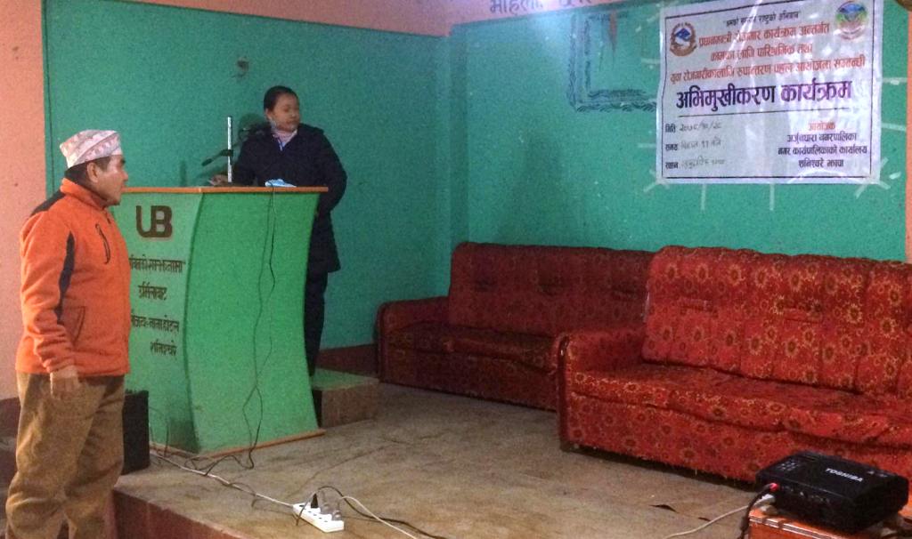 उक्त कार्यक्रमका लागि छनौट भएका बेरोजगारहरुलाई लक्षित गरि नगरपालिकाद्वारा शुक्रबार आयोजित अभिमुखिकरण कार्यक्रममा नगरपालिकाकी रोजगार संयोजक प्रतिज्ञा थापा मगरले सो कुरा बताएकी हुन् ।