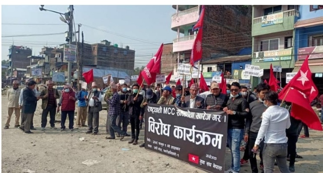 मोरङको पथरीशनिश्चरे नगरमा नेकपा (एकीकृत समाजवादी) सम्बद्ध युवा संघ नेपालले अमेरिकी मिलेनिअम च्यालेन्ज कर्पोरेशन (एमसीसी) विरुद्ध विरोध प्रदर्शन गरेको छ ।