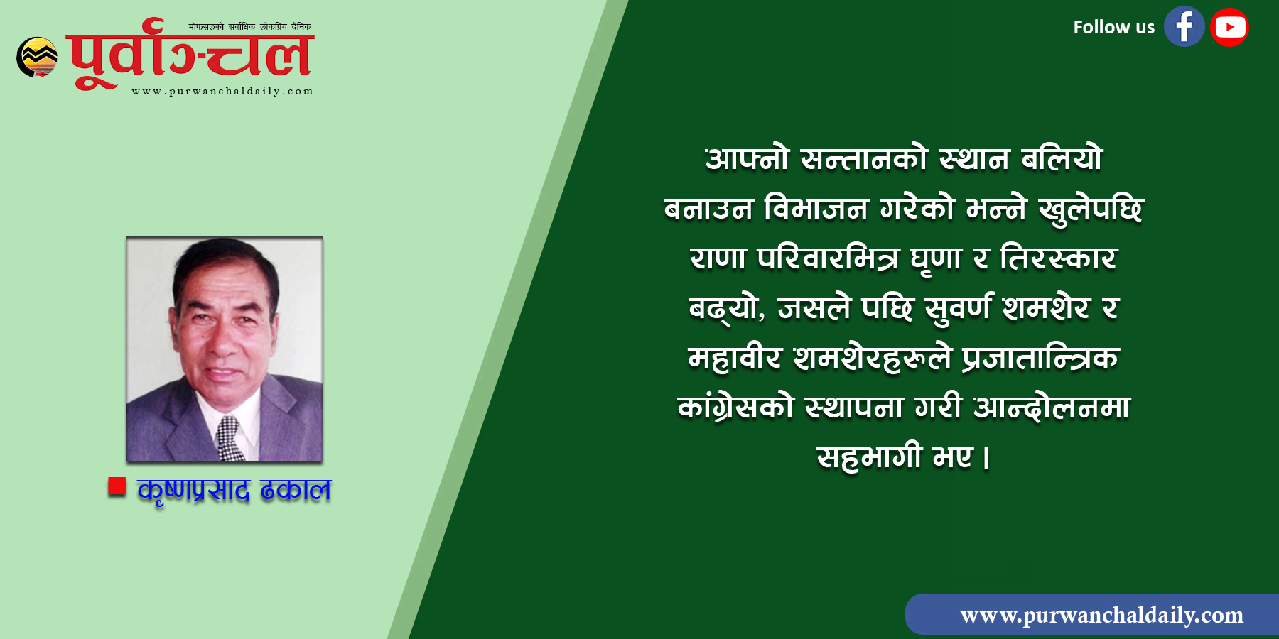 प्राप्त प्र्रजातन्त्रले आज ७०औं बसन्त पार गर्दैछ । मुलुकमा बिकास निर्माणभन्दा अभैm दलहरुबीचको आपसी खिचातानी र मनमुटाव सकिएको छैन, प्रतिनिधिसभा सुनसान देखिनु, माइतीघर मण्डेला र बानेश्वरमा घच्चाघमाशान, रत्नपार्क अनि सडकहरुमा अभैm प्रजातन्त्र प्राप्तिको घुइँचो छदैँछ, दुर्भाग्य नेपाली जनताको हो या माटोको ? राणाहरुको यही कार्यले आन्दोलनलाई सफल बनायो । राजा र जनताको त्याग र बलिदानीपूर्ण गौरव ‘प्रजातन्त्र दिवस’लाई आपसी मित्रता दिवसको रुपमा लिएर दलहरुबीच देखापरिरहेका मनमुटावहरुलाई मेलमिलापको उज्यालोमा डो¥याउन सके, प्रजातन्त्र प्रति त्यो भन्दा ठूलो उपहार अरु के नै हुन सक्थ्यो होला र ?