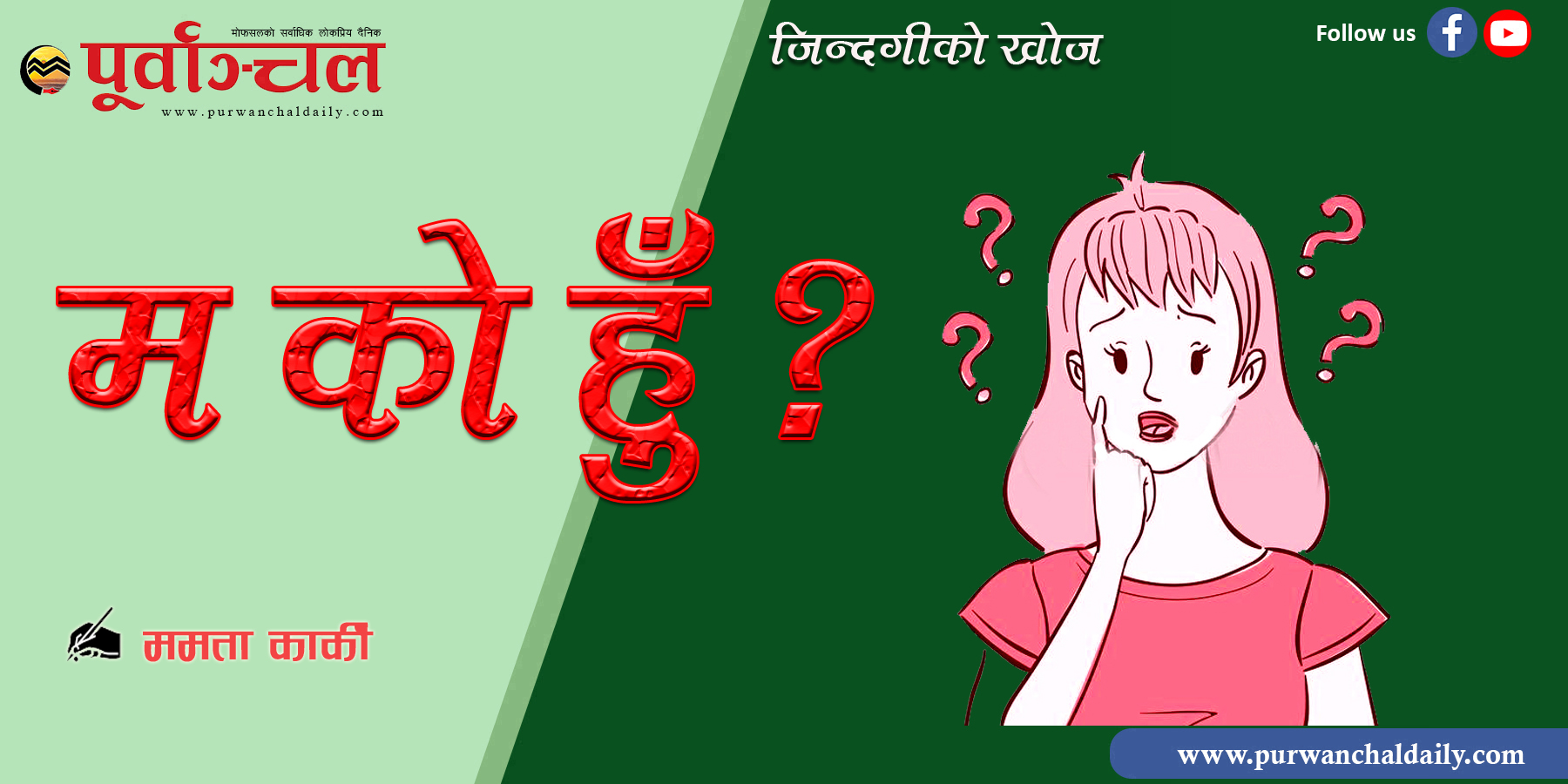 आज किन शून्य लागेको छ यो मन, हेर्छु जताततै अन्धकार मान्छेको सोचेको प्रकाशलाई विकृतिको कुहिरोले झ्याम्मै किन डाकिरहेको मात्र देख्छु ? किन आज निःशब्द छु ? म छोरी हुँ भनेर आफूले आफ्नो पहिचान दिन किन मेरा हातहरु कापीरहेका छन् ? म छोरी हँु भनी मेरा भावनाहरुलाई लेख्न किन आज खुल्ला पृथ्वीमा म पंक्षी जस्तै स्वतन्त्र भएर हिँडन सकिरहेको छैन् ? किन अन्धकार देख्छु मेरो भविष्य अनि अधुरो लाग्छ यो संसार, सबैबाट आफूलाई टाढा पाउँदै आफूले आफैंलाई प्रश्न गर्दैछु, आखिर म को हुँ ।