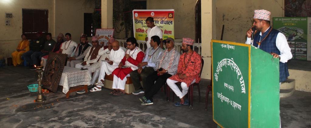 भेलामा हिन्दु जागरण नेपालका प्रमुख प्रशिक्षक धुव्रराज लूँइटेल, अर्जुनधारा जलेश्वर धामका मुल अर्चक अग्निप्रसाद सिग्देल, राष्ट्रवाद केन्द्र नेपालका संयोजक निराजन ओलीलगायतले हिन्दु धर्म संरक्षण र त्यसको चुनौताका विषयमा आफ्नो धारणा व्यक्त गरेका थिए ।