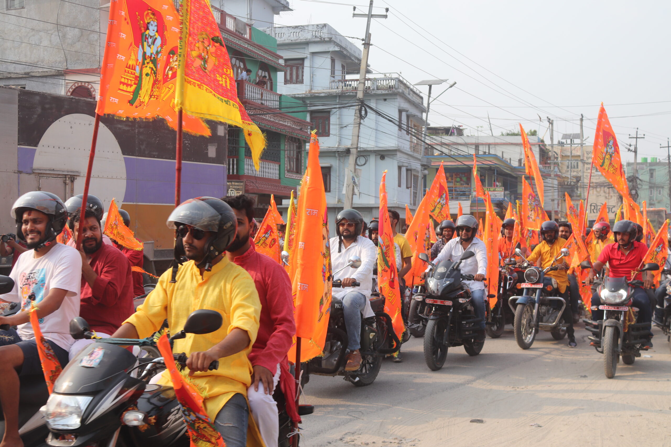 हनुमान जयन्तीका अवसरमा बिर्तामोडमा निकालिएको ¥याली