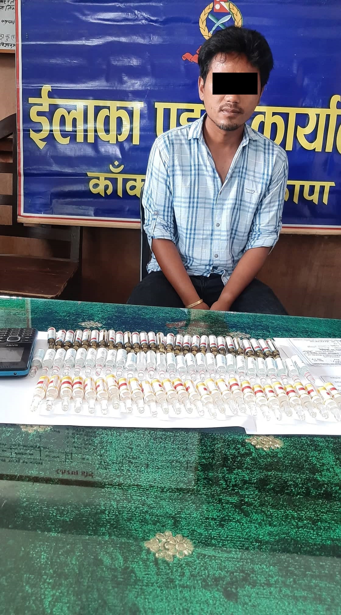इलाका प्रहरी कार्यालय काँकडभिट्टा र लागूऔषध नियन्त्रण ब्यूरो काँकडभिट्टाबाट खटिएको प्रहरी टोलीले मोरङ मिक्लाजुङ–७ मधुमल्लाका ३५ बर्षीय सुरेश लावतीलाई चेकजाँच गर्ने क्रममा लावतीको साथबाट लुपिजेसिक २७ एम्पुल, डाईजापाम २७ एम्पुल, फेनारगन-२७ एम्पुल बरामद गरी नियन्त्रणमा लिएको हो ।