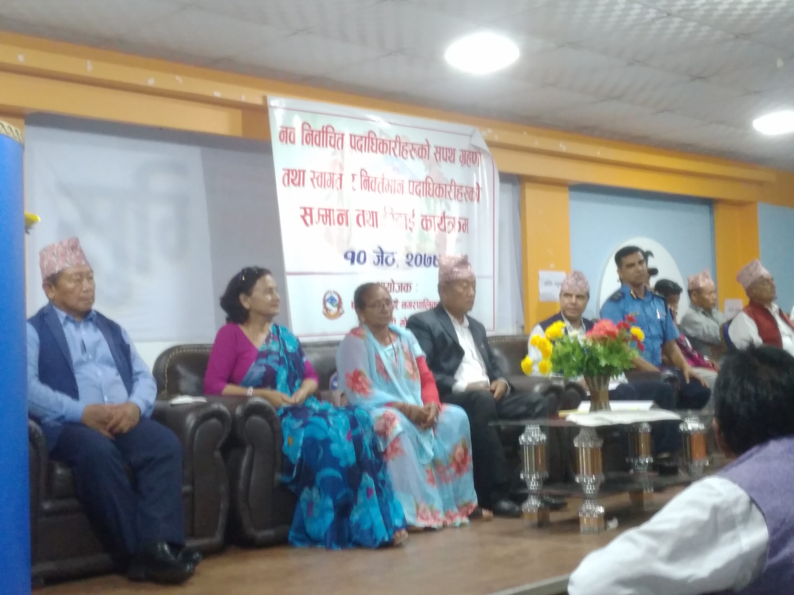 हिजो सोमबार जिल्ला न्यायाधीशको कार्यलय मोरङ्गमा सपथ लिनुभएका नगरप्रमुख मोहन तुम्वापोले एक कार्यक्रमबीच आज नगरकी उप -प्रमुख देवीमाया काफ्ले तथा अरू १० वटै वडाहरुमा निर्वाचित वडाध्यक्षहरूसहित वडा सदस्यहरूलाई पद तथा गोपनीयताको शपथ ग्रहण गराउनुभएको थियो।