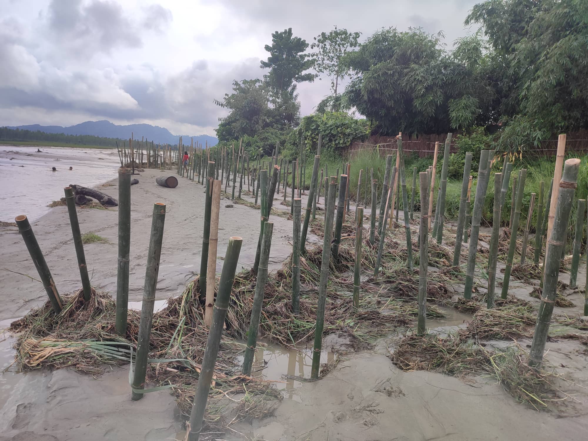 लगातारको वर्षा सगै आएको बढी बाट क्षति हुन नदिनकालागी झापाको कमल गाउँपालिकाले विभिन्न ठाउँमा बाँस को पाईलिङ लगाएको छ ।