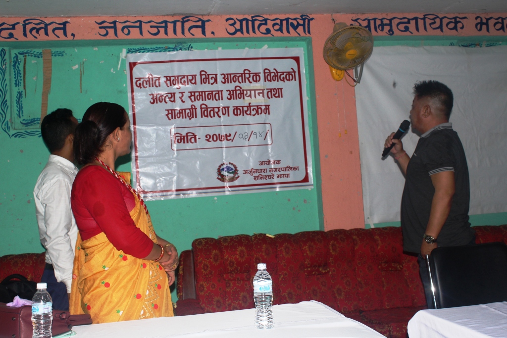 प्रमुख खड्काका अनुसार नगरस्तरिय दलित समन्वय उपभोक्ता समितिबाट छनौट भई सबै वडा समितिबाट सिफारिस भएका लाभग्राहीहरुलाई उक्त सामग्री वितरण गरिएको हो ।