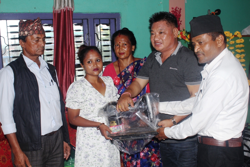 नगर प्रमुख बलदेवसिंह गोम्देनको अध्यक्षतामा आयोजित कार्यक्रममा प्रमुख गोम्देन, उपप्रमुख खड्गमाया पराजुली, सामाजिक विकास समितिका संयोजक कौशिलाल परियार “भोला”, प्रमुख प्रशासकीय अधिकृत गीताकुमारी राईलगायतले उक्त सामग्रीहरु हस्तान्तरण गरेका थिए । कार्यक्रमको सञ्चालन शाखा प्रमुख खड्काले गरेका थिए ।