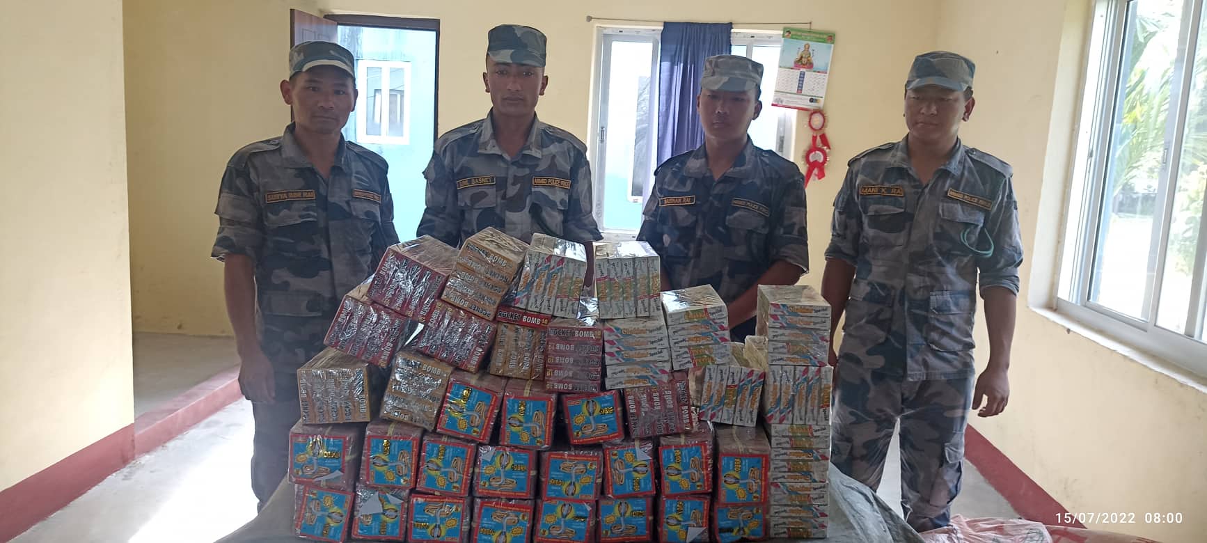 भारतबाट अवैध रुपमा लुकाइछिपाई नेपाल भित्राइएको करिब १ लाख ३५ हजार मुल्य बराबरको पटाका सशस्त्र प्रहरी बोर्डर आउट पोस्ट पृथ्वीनगरबाट खटिएको टोलीले तिरुपति चिया उद्योगको पश्चिम चिया बगानबाट बरामद गरेको थियो । बरामद गरिएको पटाकाहरू किङ कोब्रा इलेक्ट्रिक क्रेकर बम् एक हजार प्याके , राउन्ड क्रकेर बम् ५० प्याकेट, रकेट बम् ५० प्याकेट र ग्राउन्ड चक्कर ब्रान्डको बम् ५० प्याकेट रहेको बिओपी पृथ्वीनगरका इन्स्पेक्टर मान बहादुर कटुवालले जानकारी दिए । बरामद गरिएको पटाकाहरूलाई शुक्रबार बिहान जनप्रतिनिधि, राजनीति दलका प्रतिनिधि, नेपाल प्रहरी र पत्रकारको रोहबरमा नष्ट गरिएको उनले बताए । विशेष गरी दसैँ, तिहार र छठ पर्वलाई लक्षित गरी भित्राइने बारुदजन्य पटाकाहरू असार महिनामा भित्रिने थालेपछि सशस्त्र प्रहरीले त्यसतर्फ निगरानी बढाएको हो ।