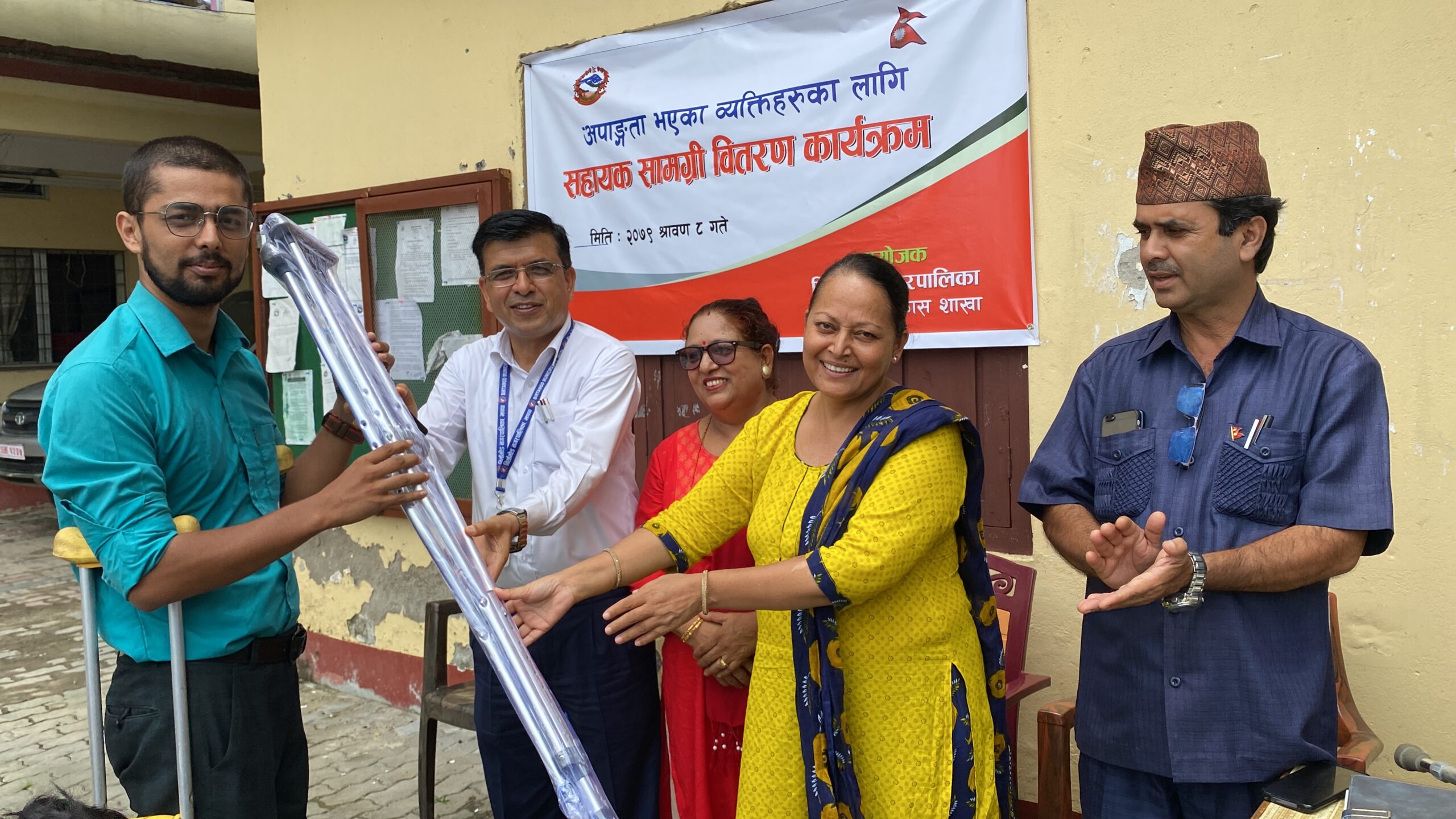 नगरपालिकाको कार्यालयमा सामाजिक विकास शाखाले आइतबार एक कार्यक्रमको आयोजना गर्दै व्हील चियर, सेतो छडी, लौरो, कम्बोड चियर, बैशाखी र वेल्ट वितरण गरेको हो ।