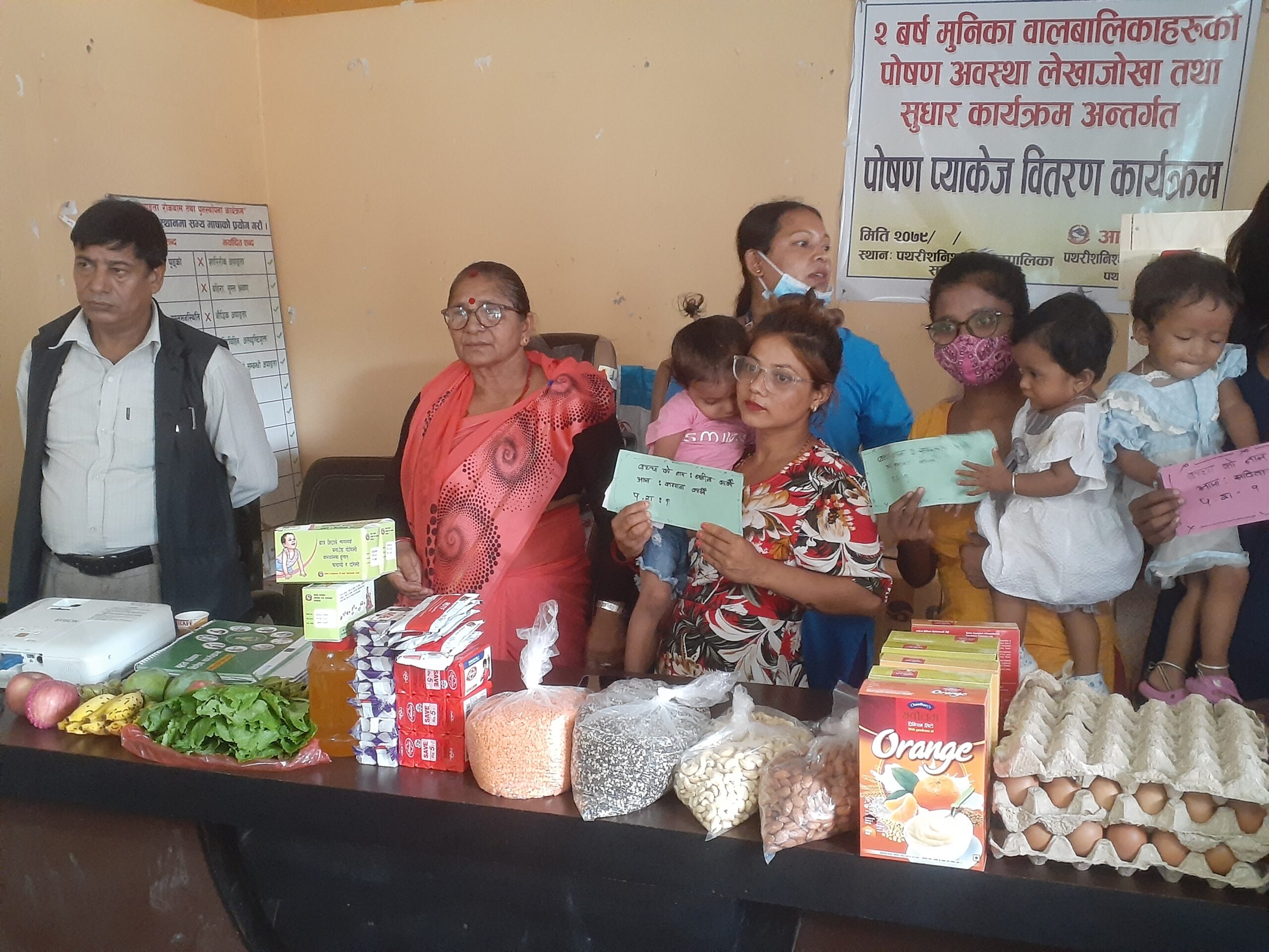 त्यस्तै, बाग्मती सेवा समाजसँगको सहकार्यमा नगरका २ वर्ष मुनिका १२ जना अतिसीघ्र र १३ जना मध्यसीघ्र गरी २५ जना कुपोषित अवस्थाका बालबालिकालाई चामल, पोषक तत्वहरुको प्याकेज समाग्री उपलब्ध गराइएको छ । नगर प्रमुख मोहनप्रसाद तुम्वापोले बालबालिकाको चौतर्फी विकासका लागि सन्तुलित भोजन गराएर उनीहरुको नैसर्गिक अधिकार स्थापित गराउन अभिभावकहरु जिम्मेवार बन्नु पर्नेमा जोड दिनुभयो ।