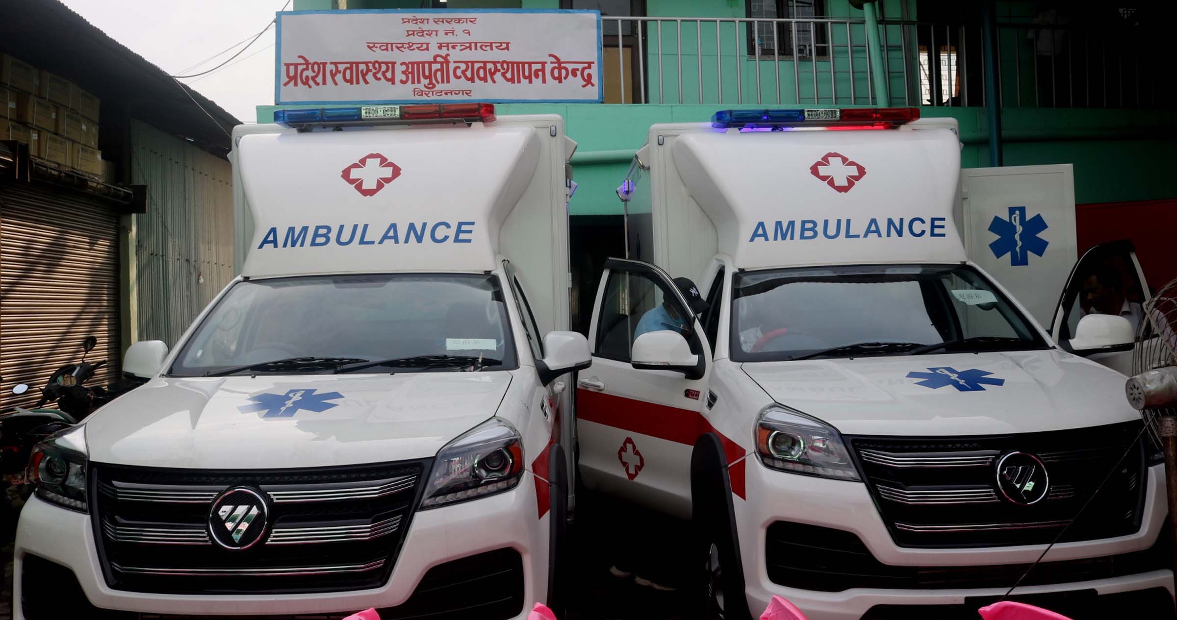 सरकारको स्वास्थ्य नीतिअनुसार १४ जिल्ला अस्पतालमा १४ थान एम्बुलेन्स र १४ थान शवबाहन उपलब्ध गराउने नीतिअनुसार पहिलो चरणमा उक्त एम्बुलेन्स प्रदान गरिएको हो ।