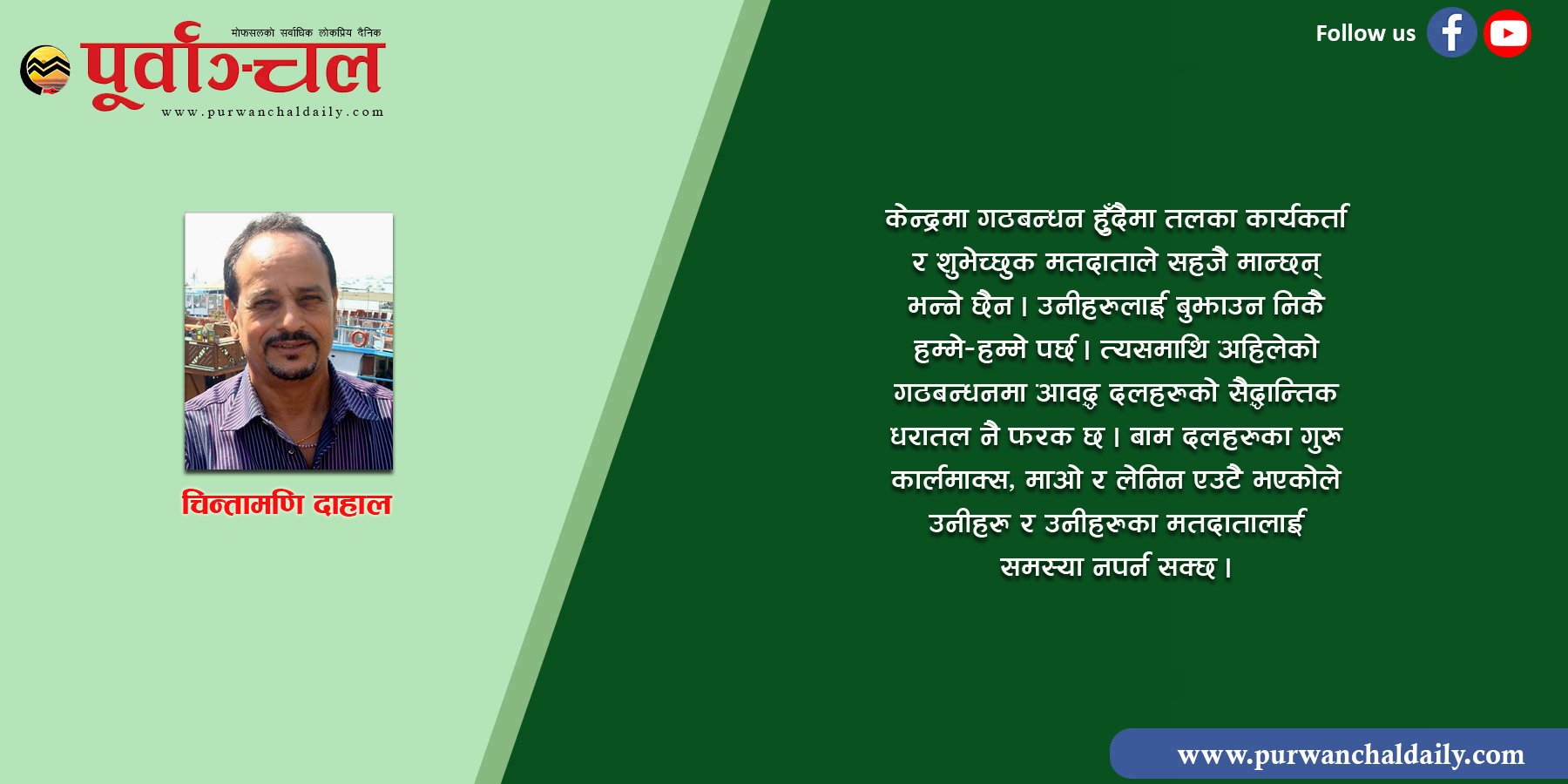 केन्द्रमा गठबन्धन हुँदैमा तलका कार्यकर्ता र शुभेच्छुक मतदाताले सहजै मान्छन् भन्ने छैन । उनीहरुलाई बुझाउन निकै हम्मे–हम्मे पर्छ । त्यसमाथि अहिलेको गठबन्धनमा आवद्ध दलहरुको सैद्धान्तिक धरातल नै फरक छ । बाम दलहरुका गुरु कार्लमाक्स, माओ र लेनिन एउटै भएकोले उनीहरु र उनीहरुका मतदातालाई समस्या नपर्न सक्छ । कांग्रेस कार्यकर्ता र शुभेच्छुकहरुलाई समस्या पर्न सक्छ । यस्तो समस्या स्थानीय तहमा देखियो । तर, आम निर्वाचनको प्रकृति, उम्मेद्वारको उचाई र व्यवहार स्थानीय तहको भन्दा फरक नै हुने भएकाले ठूलो र समाधान नै हुन नसक्ने समस्या भने हुँदैन ।