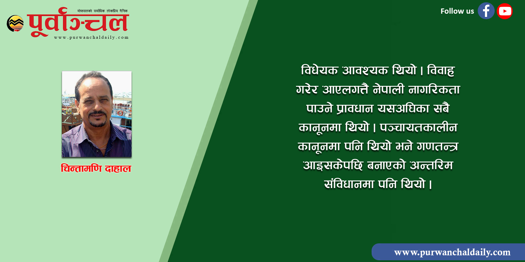 विधेयक आवश्यक थियो । विवाह गरेर आएलगत्तै नेपाली नागरिकता पाउने प्रावधान यसअघिका सबै कानूनमा थियो । पञ्चायतकालीन कानूनमा पनि थियो भने गणतन्त्र आइसकेपछि बनाएको अन्तरिम संविधानमा पनि थियो । तर, गणतन्त्र आएपछि बन्न लागेको कानूनमा त्यो नहुनु राम्रो होइन भनेर विवाह गरेर ल्याउने र आउनेहरु दुबै पक्षले भनिरहेका थिए । त्यसमा मधेशीहरु बढी थिए । विवाह गरेर त आसामबाट, दार्जिलिङबाट, सिक्किमबाट पनि पहाडी मुलकै महिला पनि आइरहेकै थिए । त्यस्तै अंगीकृत नागरिकका सन्तान जो नेपालमा जन्मेका छन् तिनलाई वंशजको नागरिकता दिने भन्ने अर्को प्रावधान थियो । यो नयाँ थियो । त्यसमा पनि विवाद थियो । अंगीकृतका सन्तानलाई सधैँ अंगीकृत नै दिनुपर्छ भन्ने एकथरी र वंशजको दिनुपर्छ भन्ने अर्कोथरी । त्यस्तै विदेशमा बसेका नेपालीहरु एन आर एनहरुलाई दोहोरो नागरिकता दिने कुरा । सार्क राष्ट्र बाहेककालाई दिनुपर्छ भन्नेमा विवाद थिएन । अहिलेको विधेयकमा त्यस्तै आएकोले विवाद थिएन । तर, यस्तो कानून नेपाल कै हितमा थियो । आवश्यक थियो । आमाको नामबाट नागरिकता दिनुपर्ने कुरा समानताको कुरा थियो । यो जरुरी भए पनि यसमा विवाद थियो ।