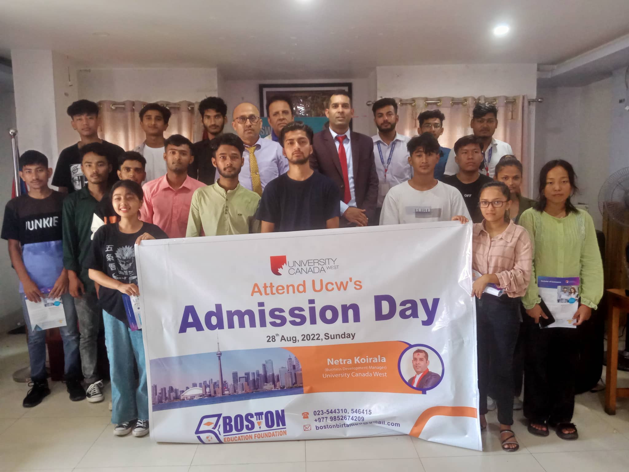 बोस्टन एजुकेशन फाउण्डेसन बिर्तामोडको आयोजनामा भएको कार्यक्रममा ३५ जनाभन्दा बढी विद्यार्थीको सहभागिता रहेको थियो ।युर्निभसिटी क्याडा वेस्टका विज्नेस डेभ्लपमेन्ट म्यानेजर नेत्र कोइरालाले उच्च शिक्षा अध्ययनका लागि क्यानडामा रशेका विद्यालयको शैक्षिक अवस्था, त्यहाँको कानुन तथा शैक्षिक गतिविधिका बारेमा विद्यार्थीहरुलाई जानकारी गराएका थिए ।