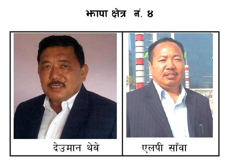 प्रदेशसभातर्फ क्षेत्र ४को १ मा उमानाथ दमाई– संलोराम, गोन्धा ताजपुरिया–जनमत, झलकबहादुर मंगर–माओवादी केन्द्र, भरत राई– मंगोल नेशनल, मेहरमान बस्नेत– स्वतन्त्र, रमेशप्रसाद आचार्य – स्वतन्त्र, राधाकृष्ण खनाल –एमाले, शान्तिराम न्यौपाने – स्वतन्त्र, संगीता लिम्बू राजपा र होमप्रसाद गौतम– हाम्रो नेपाल पार्टीले उम्मेदवारी दर्ता गराएका छन् ।