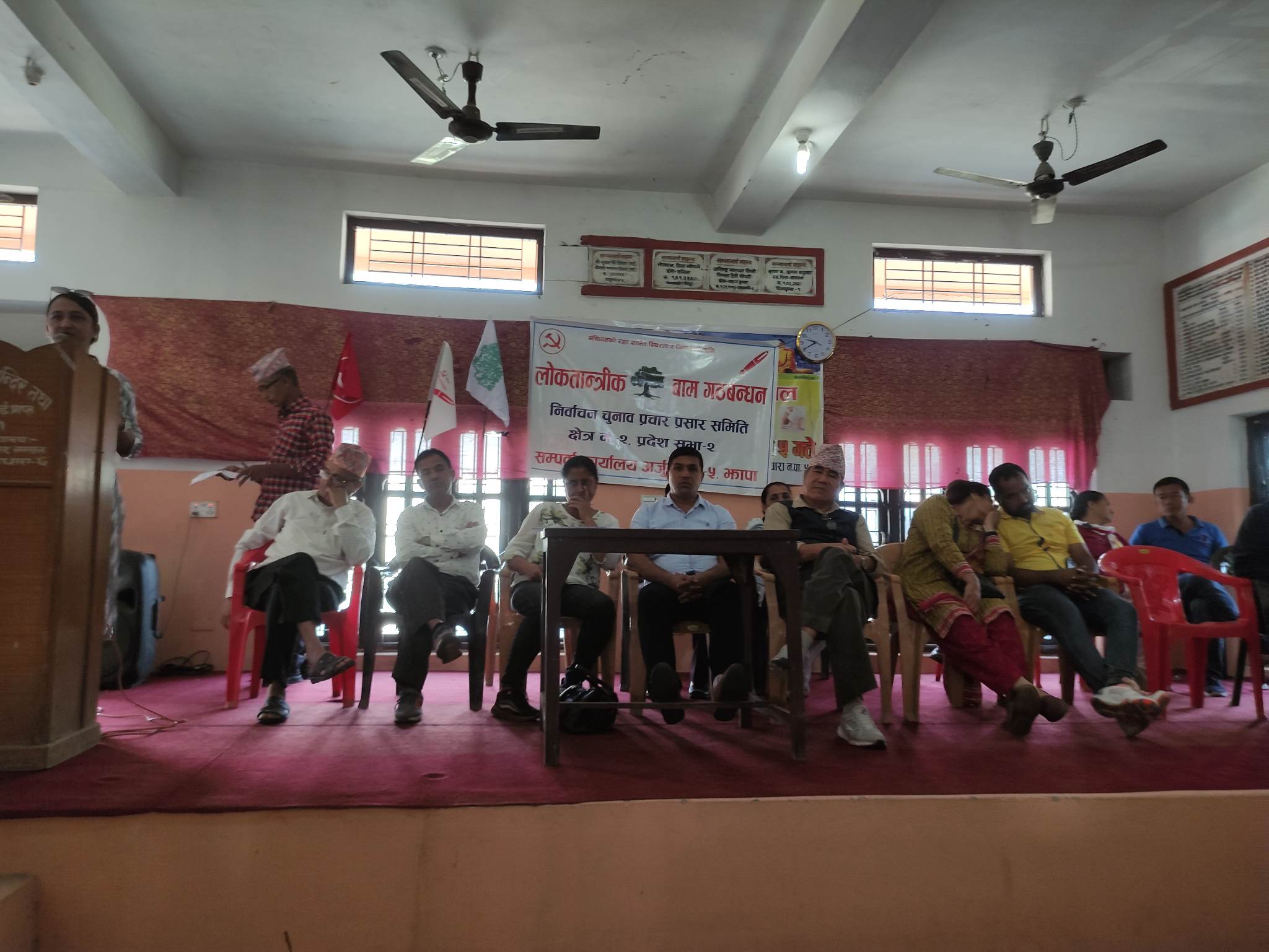 सुरज भण्डारीको अध्यक्षतामा भएको कार्यक्रममा एसका जिल्ला सदस्य गणेश खड्काले स्वागत गरेका थिए । कार्यक्रममा नेकपा (माओवादी केन्द्र) पोलिट ब्यूरो सदस्य धर्मशीला चापागाई, सहिद पिता केदारशम्शेर गिरी, नेपाली कांग्रेस १ नं. प्रदेश सदस्य रञ्जिता कार्कीलगायतले गठबन्धनले २ नं. क्षेत्रमा जित्नेमा शंका नगर्न आम कार्यकर्तालाई बिश्वास दिलाए ।