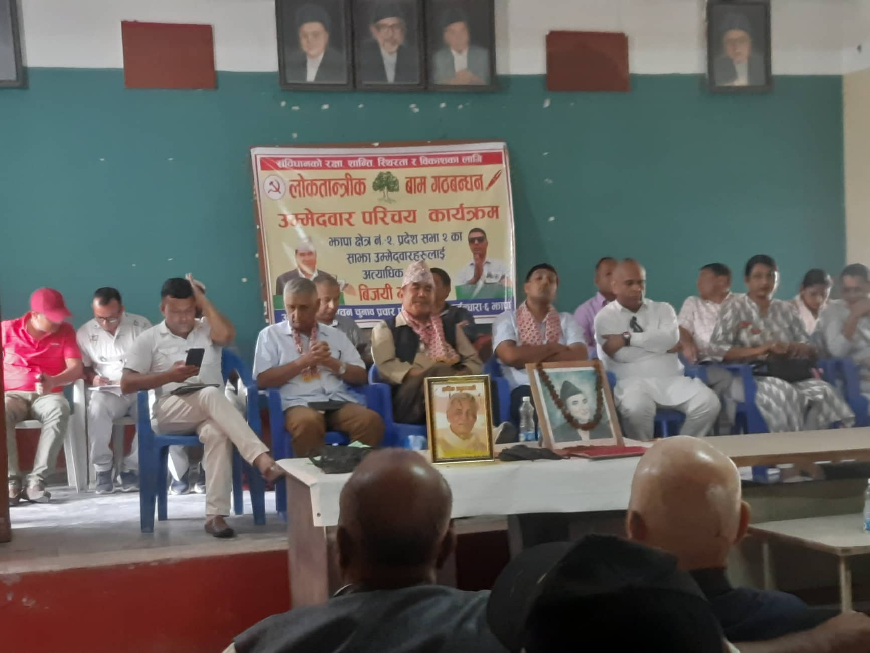 कार्यक्रममा निर्वाचन परिचालन समितिका संयोजक सुधिरकुमार शिवाकोटीले मुलुकको आवश्यकताका आधारमा अग्रगामी शक्तिहरुबीच गठबन्धन भएको चर्चा गर्दै मुलुकबासीको हित र जनआन्दोलनको उपलब्धी रक्षाका लागि गठबन्धनका उम्मेद्वारलाई जिताउनु सबैको दायित्व भएको धारणा राख्नुभयो ।