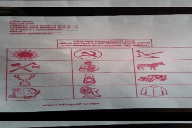 मतपत्रमा प्रतिनिधि र प्रदेशसभा निर्वाचनमा भाग लिएका दलका चुनाव चिह्न अंकित गरिएको छ भने रातो मसीको विवरण र चुनाव चिह्न भएको मतपत्र रहेको प्रहरीले जनाएको छ।