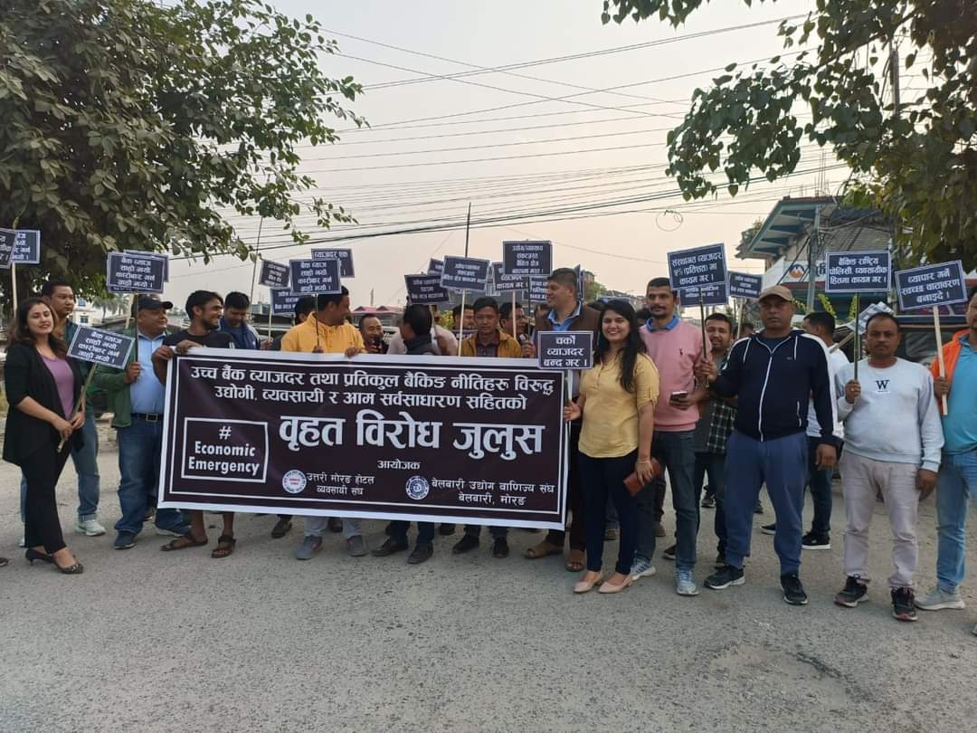 बैँकहरुले चर्को ब्याजदर निर्धारण गरेर ढाड सेकेको भन्दै बेलवारीका ब्यवसायीहरु आन्दोलित भएका छन् । बिहिवार दिउँसो उच्च बैँक ब्याजदर तथा प्रतिकुल बैकिङ नितिका विरुद्ध उद्योगी , ब्यवसायी र सर्वसाधारण सहितले बृहत बिरोध जुलुस समेत निकालेर विरोध गरेका हुन् ।