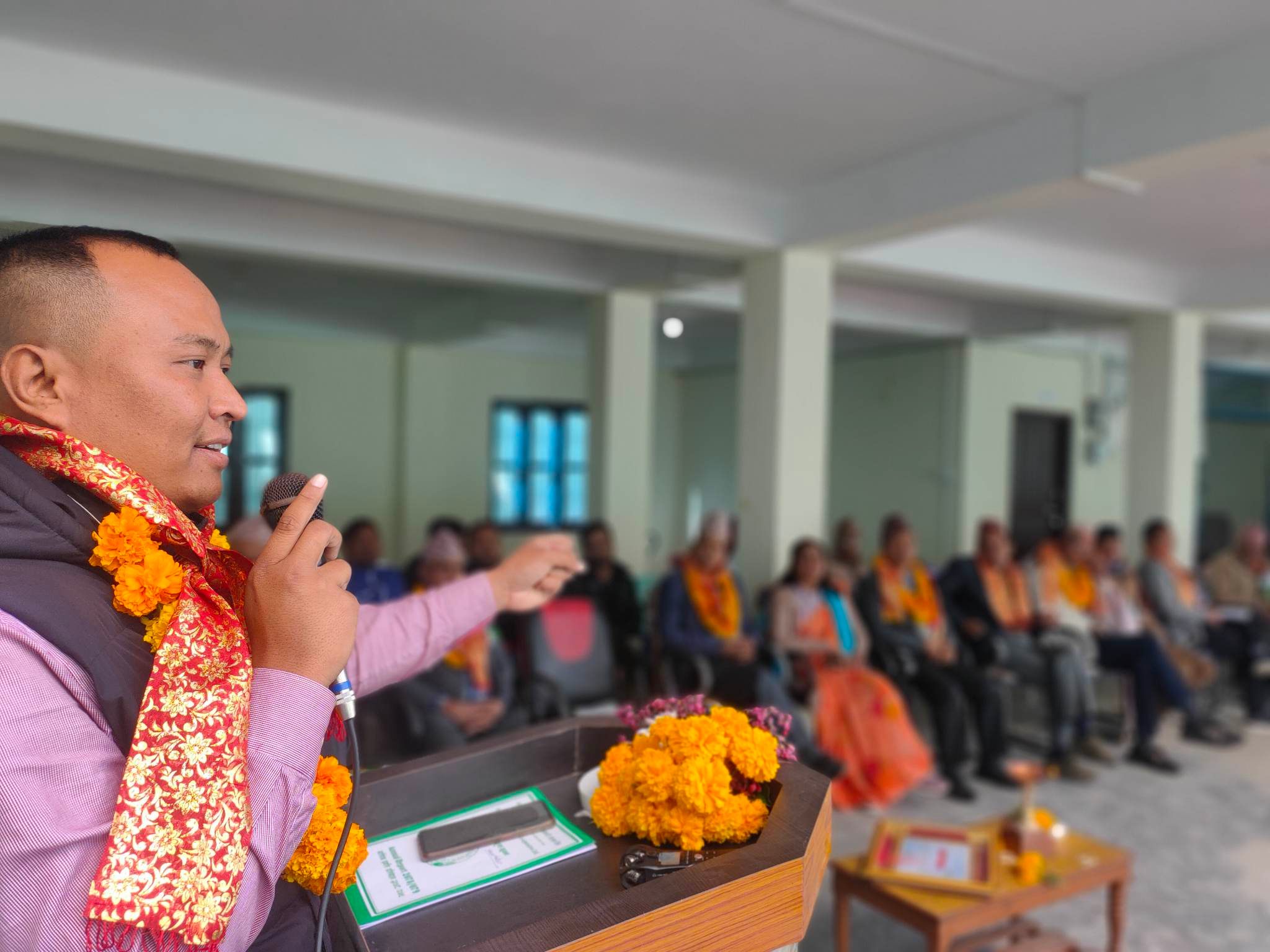 सभालाई सम्बोधन गर्ने क्रममा कार्यक्रमका प्रमुख अथितिको रुपमा उपस्थित रोङ गाउपालिकाका अध्यक्ष मणि कुमार स्याङबोले सहकारीको माध्यमबाट समाज को आर्थिक बिकास हुने बताउनु भएको छ । ‘‘बचत जम्मा गर्दा मात्रै सहकारी को सदस्य भइदैन अध्यक्ष स्याङबोले भन्नु भयो,˗ सहकारीबाट आवस्यक परेको बेला ऋण पनि चलाउनु पर्छ । असल सगत भएकाहरुलाई सहजीकरण गर्ने काममा सहकारीले सहयोग गर्नुपर्नेमा उहाले जोड दिनुभयो ।