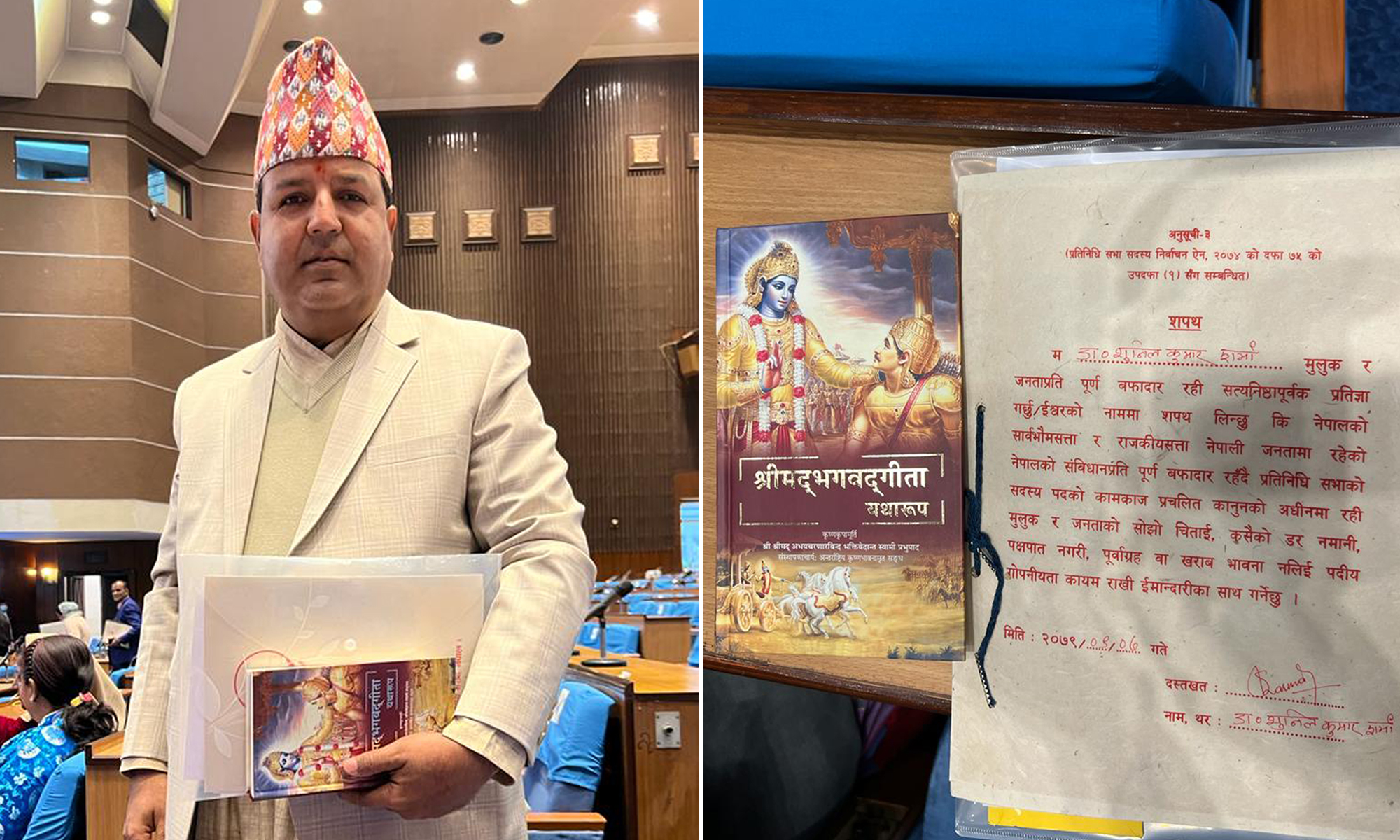 सांसद शर्माले भागवत गीता छोएर खाए भ्रष्टाचार नगर्ने सपथ