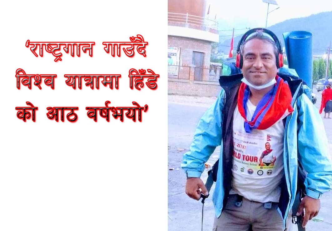 जिल्लाको बागलुङ नगरपालिका(६ का ४३ वर्षीय नेपालीले राष्ट्रगान गाउँदै विश्व यात्रामा हिँडेको आठ वर्षभयो जसले उहाँलाई विश्वयात्रीका रुपमा स्थापित बनाइसकेको छ ।