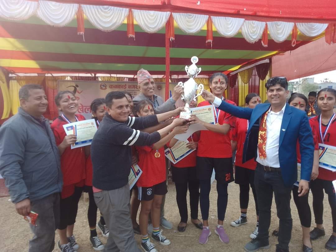 कनकाई नगर खेलकुद विकास समिति र कनकाई नगरपालिका शिक्षा, युवा तथा खेलकुद शाखाको संयुक्त आयोजनामा भएको राष्ट्रपति रनिङ शिल्ड खेलकुद प्रतियोगितामा २३ स्वर्ण, ७ रजत र १४ कास्यसहित कन्काई मावि सुरुङ्गा प्रथम भएको छ भने ७ स्वर्ण, ११ रजत र ६ कास्य पदकसहित आदर्श विद्यामन्दिर मावि घैलाडुब्बा द्वितीय भएको छ । कन्काई मावि विजेता भएपछि खेलकुद विभागका इञ्चार्ज खेमराज भट्टराई, खेलकुद समितिका संयोजक शिशिर तिम्सिना लगायतले विजेता खेलाडीलाई बधाई दिएका थिए ।